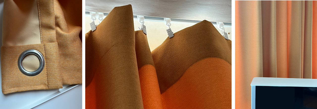 길이도 고리도 맞지 않는 커튼을 어떻게 고칠 것인지 머리를 굴려야 했다. 길이는 줄인다 쳐도 고리는 어떡할 것인가. 예전에 살던 집은 집주인이 커튼레일을 해놓지 않았다. 그래서 안뚫어고리와 커튼봉을 이용했다. 그런데 이사한 집에는 레일이 있었다. 핀을 이용해야 했다. 커튼봉 구멍은 핀에 비해 터무니없이 컸다. 커튼을 위아래 거꾸로 뒤집어 보면 어떨까? 그리고 그 구멍라인을 접으면 길이가 줄겠다는 생각이 들었다.