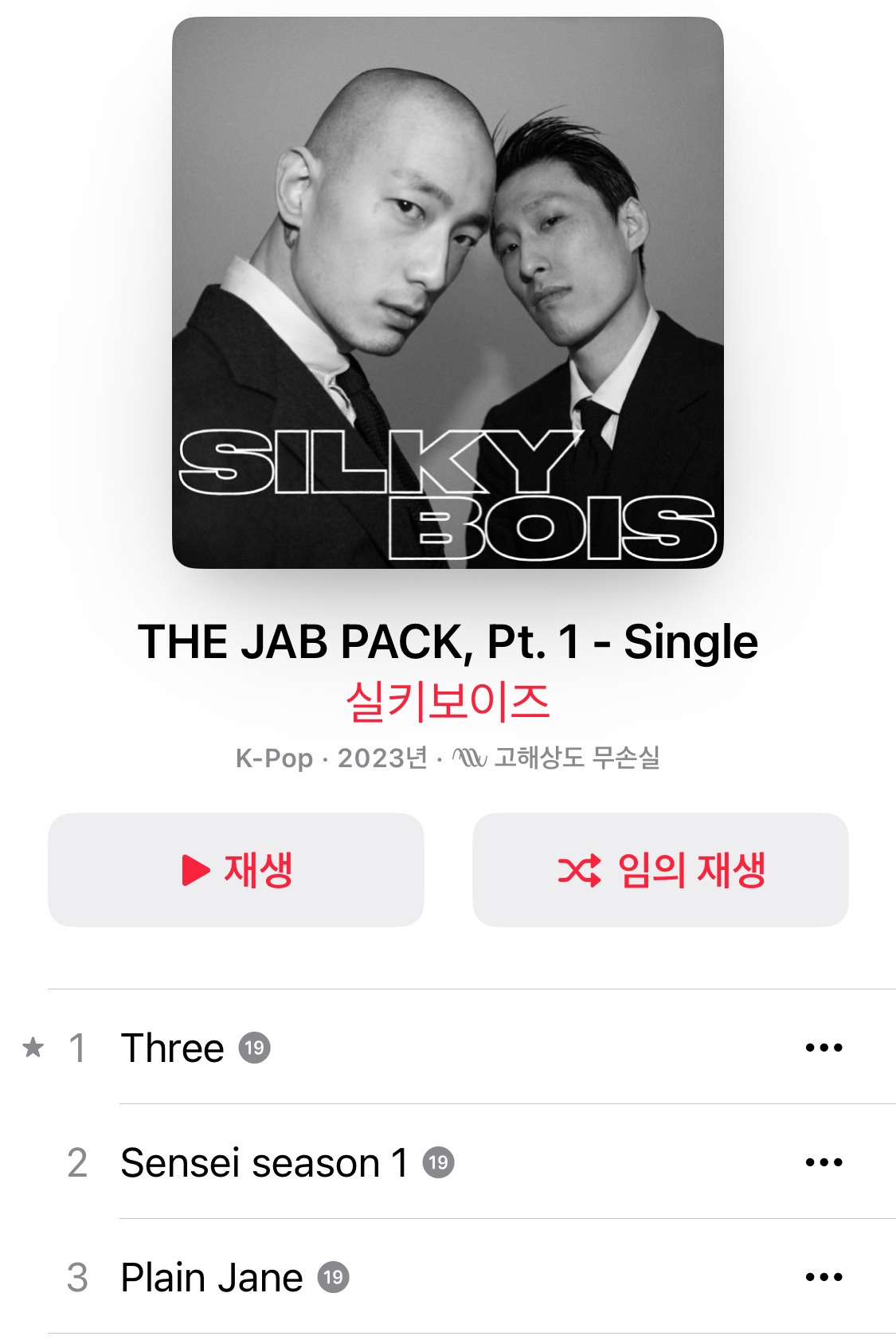 실키보이즈는 2021년을 끝으로 한동안 앨범을 내지 않았다. 그러다가 올해 2월 오랜만에 싱글을 냈다. 역시 이번에도 스타일리시하게 잘 뽑아냈다. 앨범에는 세 곡이 있는데 개인적인 취향으로는 <Plain Jane>을 가장 좋아한다. 드릴도 아니고 싱잉랩이다. 평소 그루브 있는 노래를 좋아해서 그런지 내 취향이었다. 실키보이즈의 R&B도 좋아한다. 들으면 세련됨이 마구 뿜어져 나온다. 나머지 노래도 정말 좋다. 흑백빨을 받아서 뭘 해도 멋있어 보이는 것 같기도 한데 ㅎㅎ 그래도 기본적으로 워낙 감각이 있어 보인다. 아무튼 실키보이즈 이번 앨범도 음악을 하이엔드 패션처럼 만들어버리는 그런 노래들이었던 것 같다. '스타일리시란 이런 것이다!'를 잘 보여준 음악이었다.