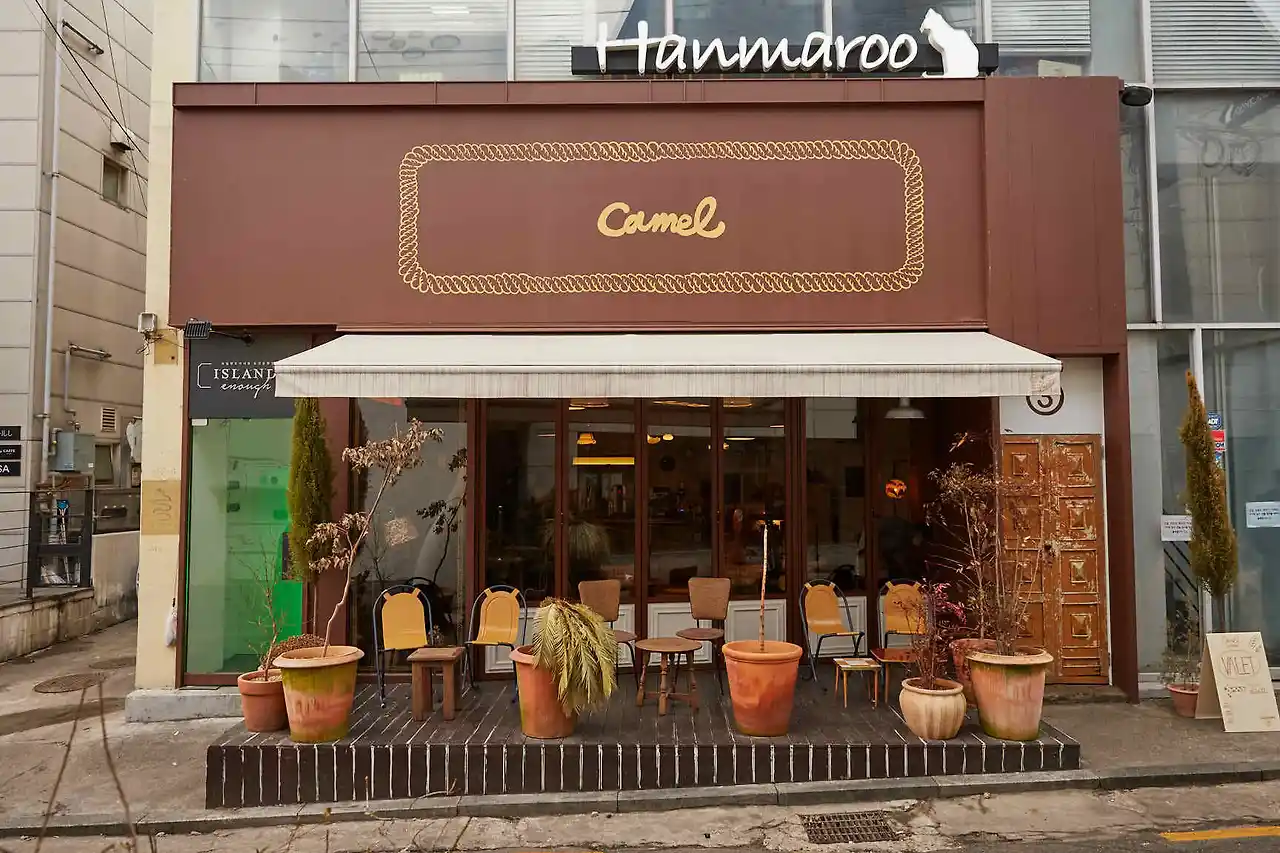 ‘카멜커피’는 대표님이 정말 유명하다. ‘유퀴즈’, ‘터키즈’ 다 출연했다. 팔로워 19만 인플루언서다. 유쾌한 끼쟁이인 데다가 별명도 미스터카멜, 3초 정우성, 청담동 입양아들 등 다양했다. 대표님은 20대 초반에 부산에서 서울로 상경했다. 카페 이전에 패션 사업을 했다고 한다. 그 사업이 잘 안 되기는 했지만 기본적으로 옷을 좋아하고 패션 센스가 있었기 때문에 운영할 수 있었던 사업이었을 것이다. 그런 감각 덕분인지 카멜커피 공간도 본인이 원하는 스타일로 채웠다. 대표님이 카멜색을 좋아해서 카멜커피가 됐고, 커피도 본인 입맛대로 만들었다고 한다. 대표 자체가 브랜드가 됐다.