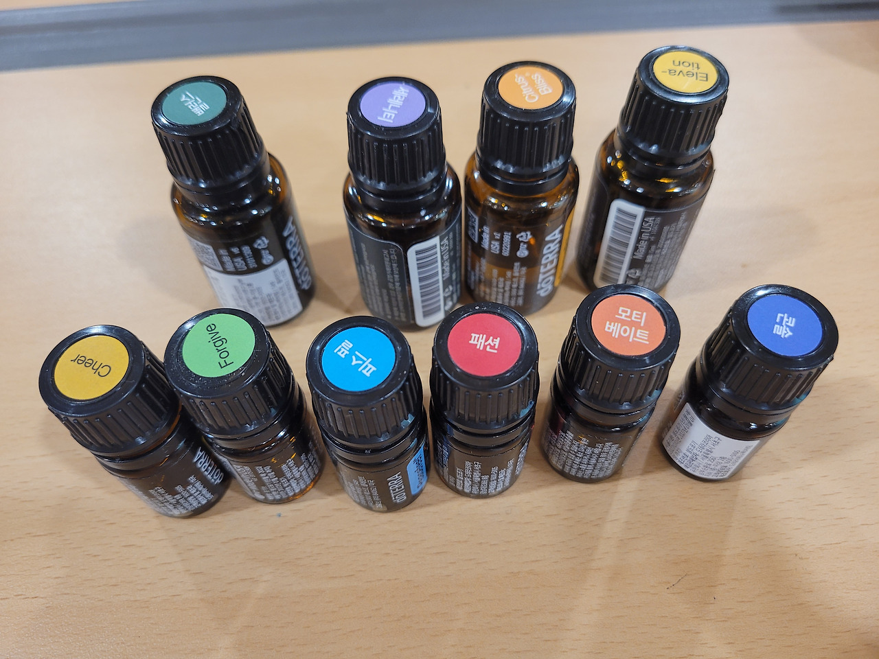 감정오일에는 치어, 포기브, 패션, 콘솔, 피스필, 모티베이트가 있고요.