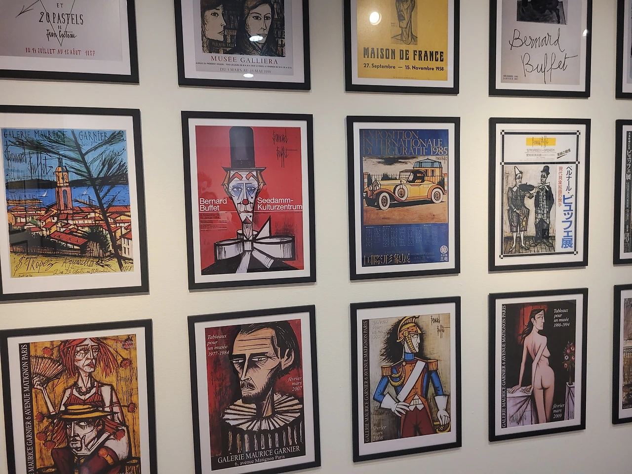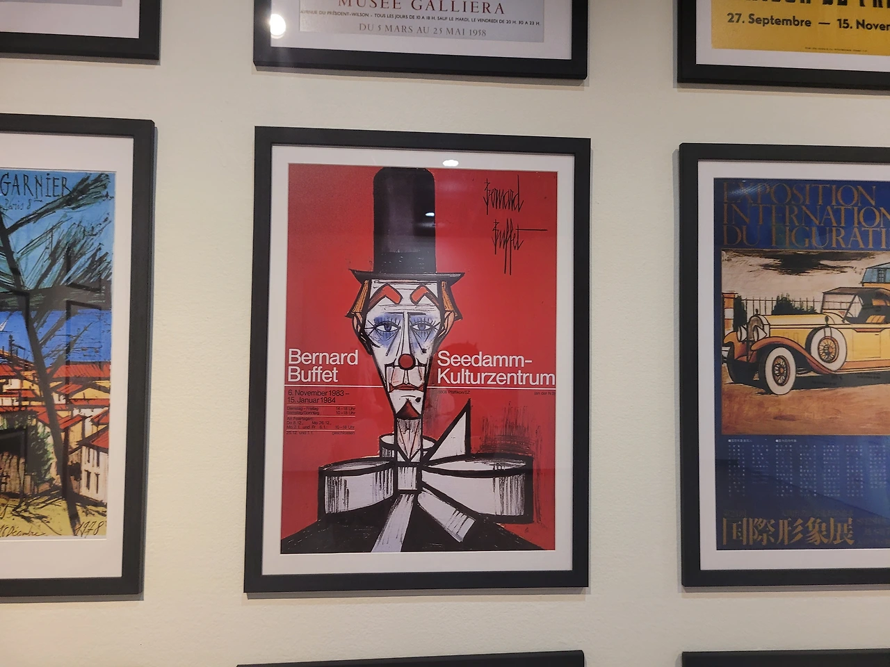 뷔페는 광대를 주제로 한 여러 작품을 남겼습니다. 또한 자화상시리즈로 뷔페 자신을 주제로 한 그림들도 많이 남겼습니다. 스스로를 광대라고 생각하며 작품들을 통해 자신의 내면적 고통과 외로움을 상징적으로 표현한 걸로 보입니다. 시간이 흐를수록 그의 그림 속 광대의 모습도 조금은 안정되고 편안한 모습으로 바뀌어 간다고 느껴졌습니다.