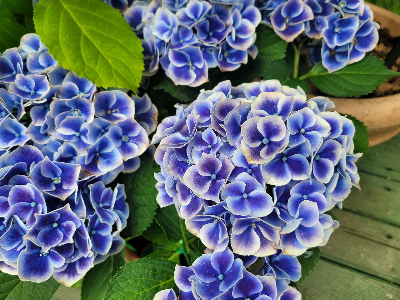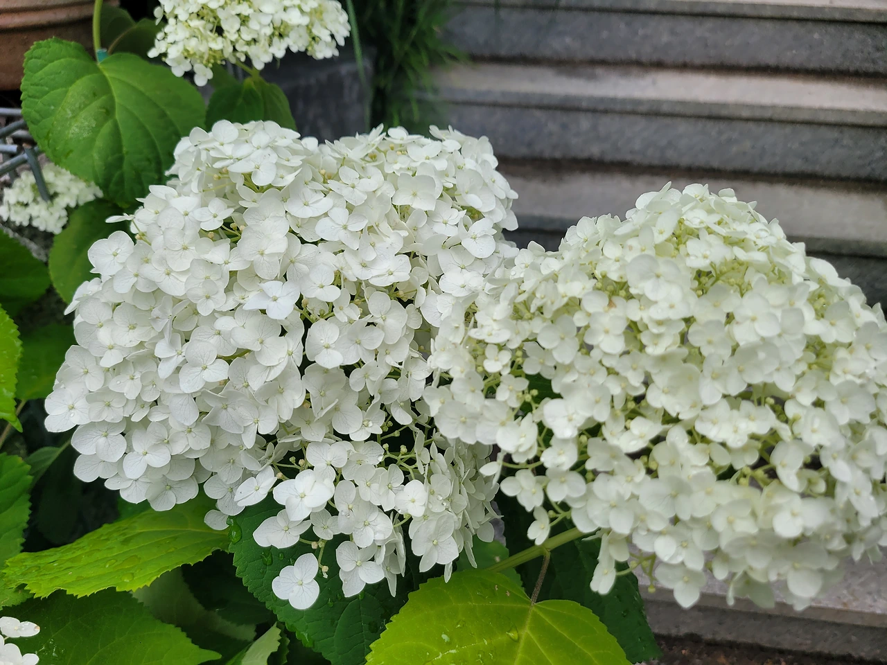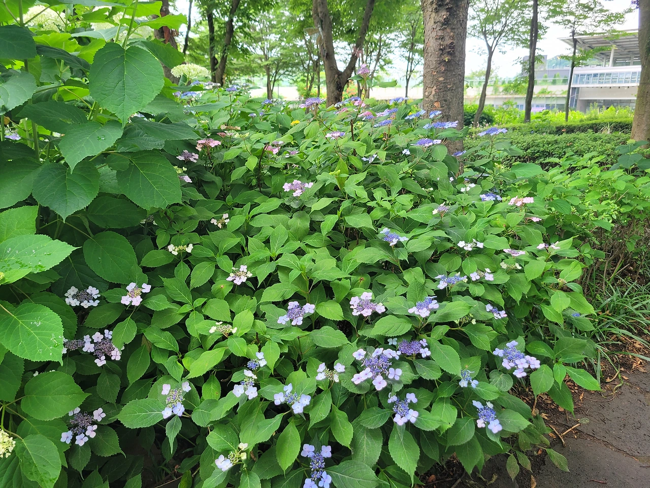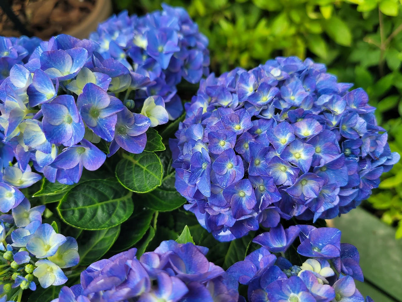 꽃은 작은 꽃이 모여 큰 꽃을 이루고 색상은 주로 흰색, 분홍색, 파란색, 보라색 등이 있으며, 토양의 산도에 따라 색이 변하기도 합니다. 예를 들어, 산성이면 파란색, 알칼리성이면 분홍색 꽃이 핀다고 합니다.
