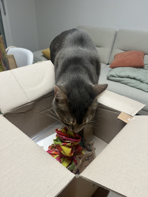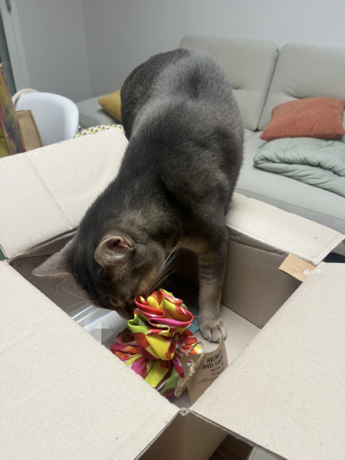 울 냐옹이의 신상 언박싱 통과 의례는 볼로 물건을 비비는 걸로 시작한다.