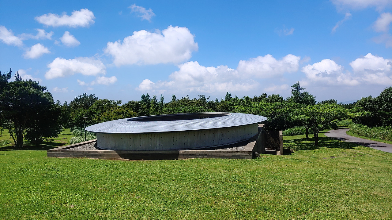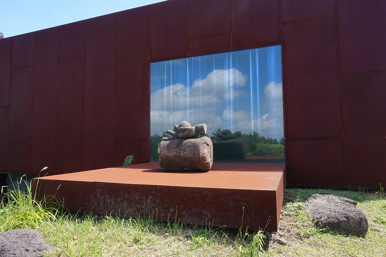 미리 예약을 해야만 관람이 가능하고 근사한 곳이라는 평이 자자해서 이번 여행에서 한껏 기대를 했던 곳 중 하나였다. 한 차례의 예약 변경 끝에 최고로 쾌청한 날씨에 관람을 할 수 있었다. 직접 가서야 알게 된 사실인데, 수풍석 박물관은 비오토피아 타운하우스가 있는 마을 안에 위치하고 있었다. 그래서 그곳 주민들의 허락 하에 하루에 2회(오전 1번, 오후 1번)만 방문이 가능한 상태였다. 관람시간이 충분히 길지는 않았고, 투어를 신청한 여러 사람들이 한꺼번에 버스를 타고-물론 마스크를 하고- 안내자의 인도를 따라 관람을 하는 방식이다 보니 아무래도 충분히 감상을 하기에는 제약이 있어 좀 아쉬웠다. 솔직히 이타미 준의 건축물보다 더 인상적이었던 건 그곳에 지어져 있는 개인주택들이었다. 산방산이 보이고 확 트여있는 전망, 외부와 분리되어 이렇게 조용하고 방해받지 않는 공간이라니... 정말 놀라웠고 부럽다는 마음이 마구 올라오기 시작했다.