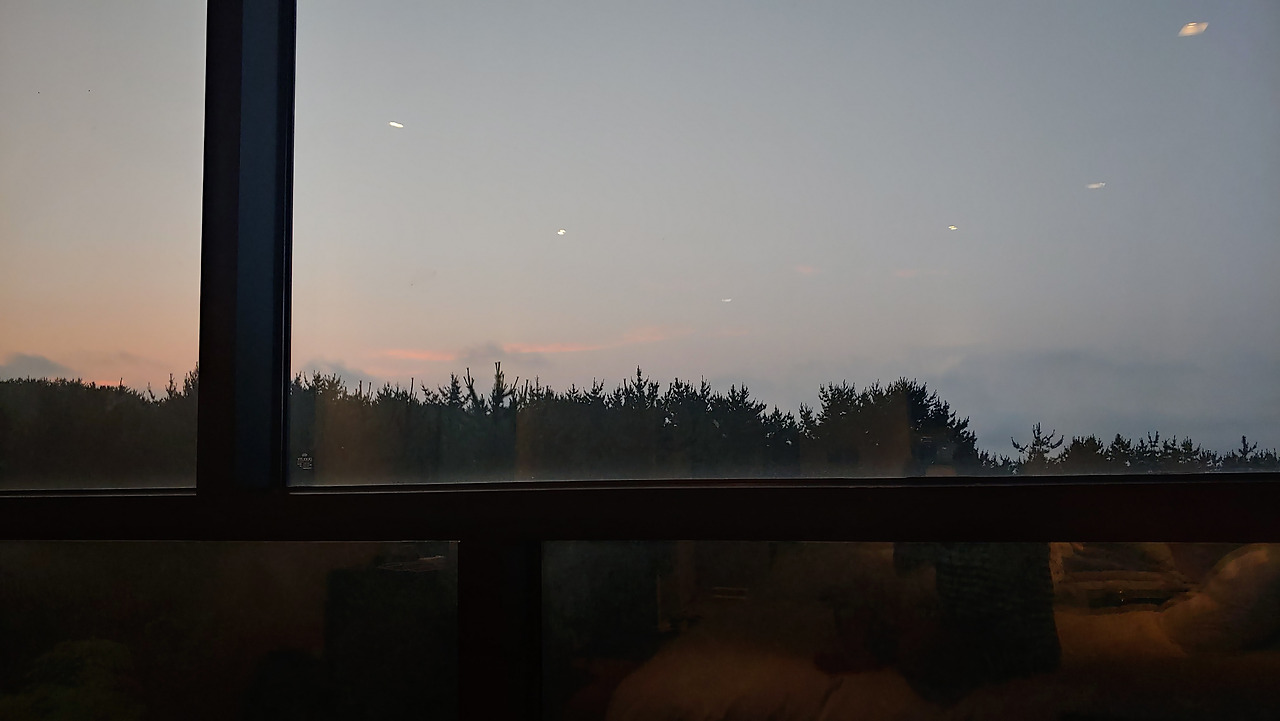 한라산 근처에 있는 <난타 호텔>도 기대 이상이었던 곳이다. 저렴한 숙소들에 조금 지쳐 단지 깔끔하고 쾌적한 호텔을 원했던 것이었는데, 방에서 보이는 전망이 머무는 내내 기쁨을 주었다. 침대에 누우면 하늘이 창 전체를 통해 보이고, 묵던 방의 높이까지 올라와있는 소나무들이 함께 보였다. 아래를 내려다보면 소나무 옆에 있는 대나무의 연초록 잎들이 바람에 흔들리는 모습이 보였다. 파란 하늘과 짙은 녹색의 소나무, 연초록의 대나무 잎과 밝은 청색을 띤 수국들의 조화는 참 아름다웠다. 이 풍경 속에 제비가 끊임없이 날아다니며 생기를 불어넣었다. 맑은 날에는 멀리 있는 오름들이 선명하게 제 모습을 드러내기도 했다.