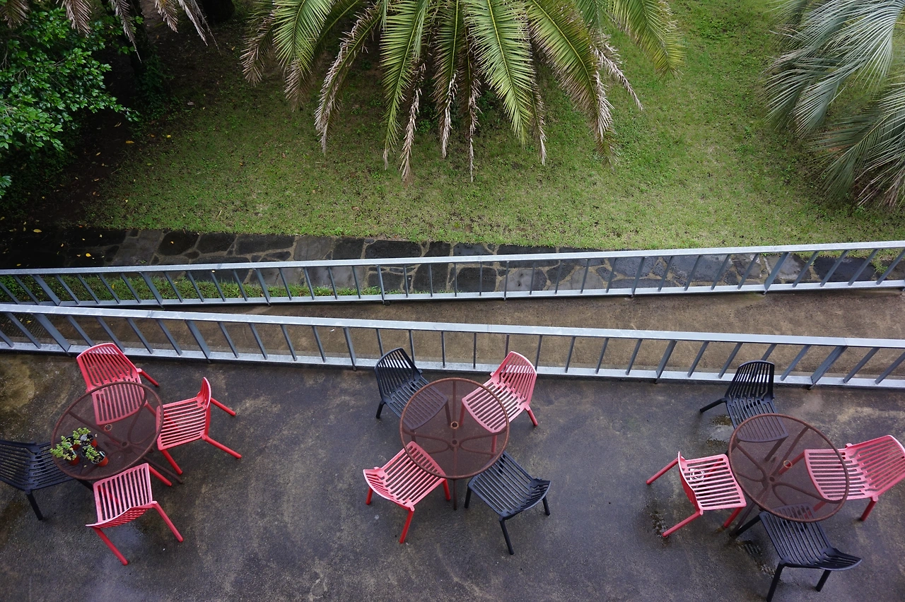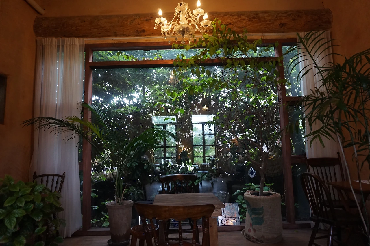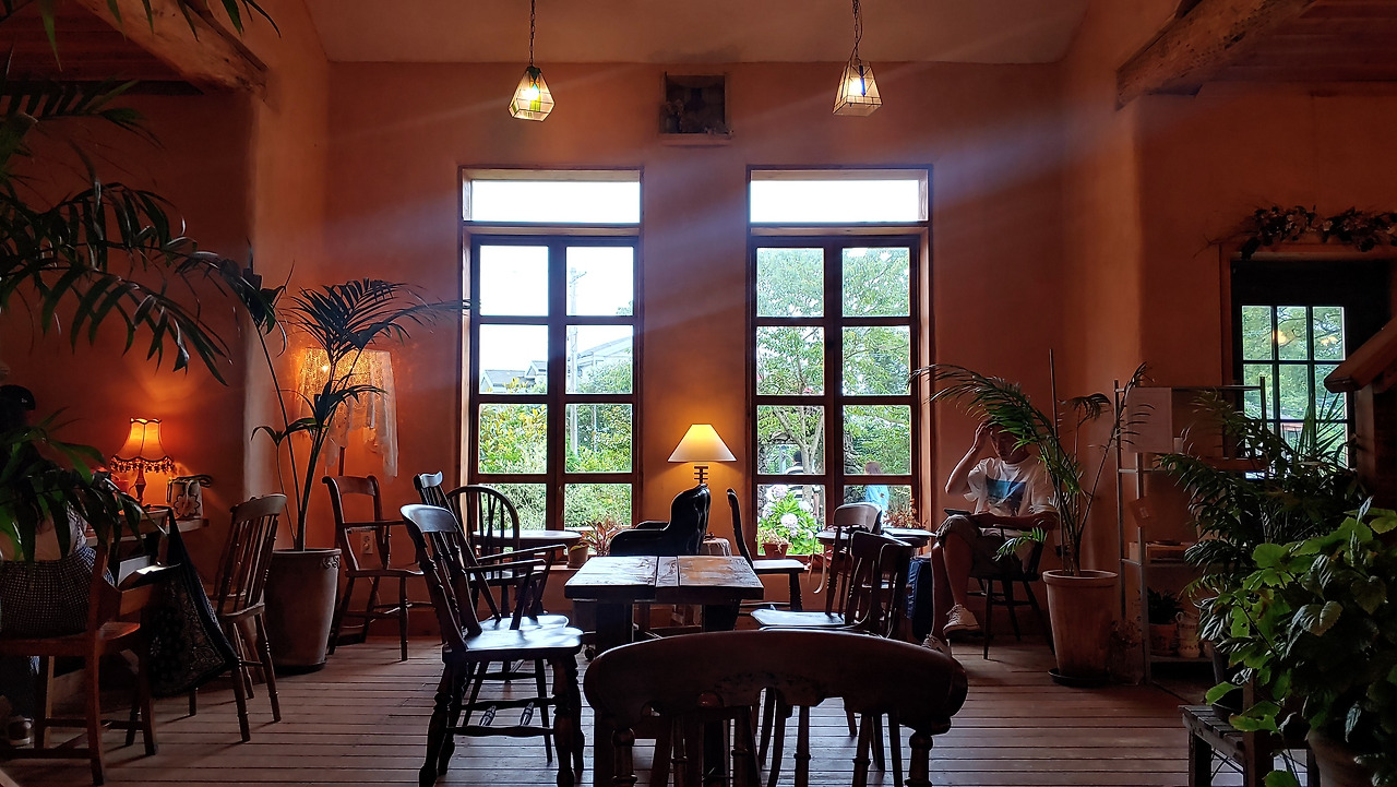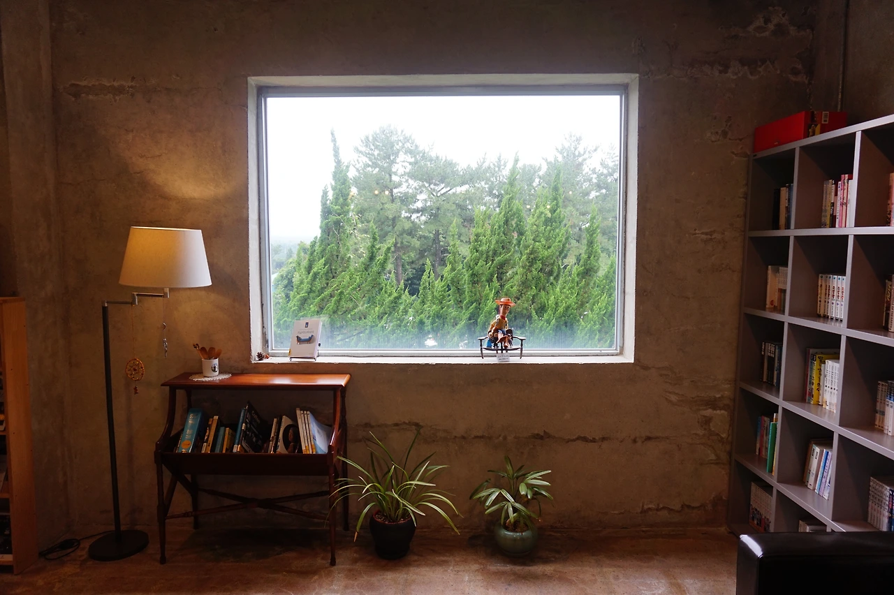 도로에서 한참을 안으로 들어가면 나무들 사이로 적갈색 벽돌로 지어진 단정한 건물이 모습을 드러낸다. 여기는 외관도, 내부 공간도 모두 숲에 싸여있는 분위기인데, 한마디로 숲을 마음껏 즐기도록 만들어진 공간이다. 긴 통창과 작은 창문들도 모두 주변의 나무를 더 가까이 볼 수 있도록 설계되어 있고, 실내 공간 옆에는 테라스 공간을 크게 따로 내어 야외에 앉아 있는 듯한 기분을 충분히 낼 수 있다. 전망을 제대로 즐길 수 있는 옥상 공간도 따로 있다. 카페 내부에는 해외의 여행지들을 찍은 사진들이 중간중간에 걸려 있고, 다양한 크기와 색깔의 의자와 테이블이 놓여있어 지루하지 않고 다채로운 분위기를 만들어낸다. 단지 인테리어를 위한 것이 아닌, 정말 읽으라고 둔 책들-만화책 포함-이 잔뜩 꽂혀있는 책장도 있었다. 여기에 와서는 제대로 푹 쉬다 가라고, 이 공간을 지은 이가 내게 말을 건네는 것만 같았다. 그렇다, 나는 오자마자 이 카페에 완전히 반해버렸다! 문을 연 지 얼마 지나지 않은 이른 시간에 와서인지 사람이 거의 없었고, 나는 이 근사한 공간을 혼자 독차지한 것만 같은 황송함을 느끼며 이곳의 모든 것을 맘껏 향유했다.