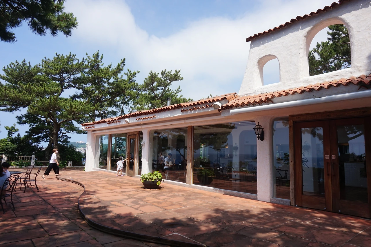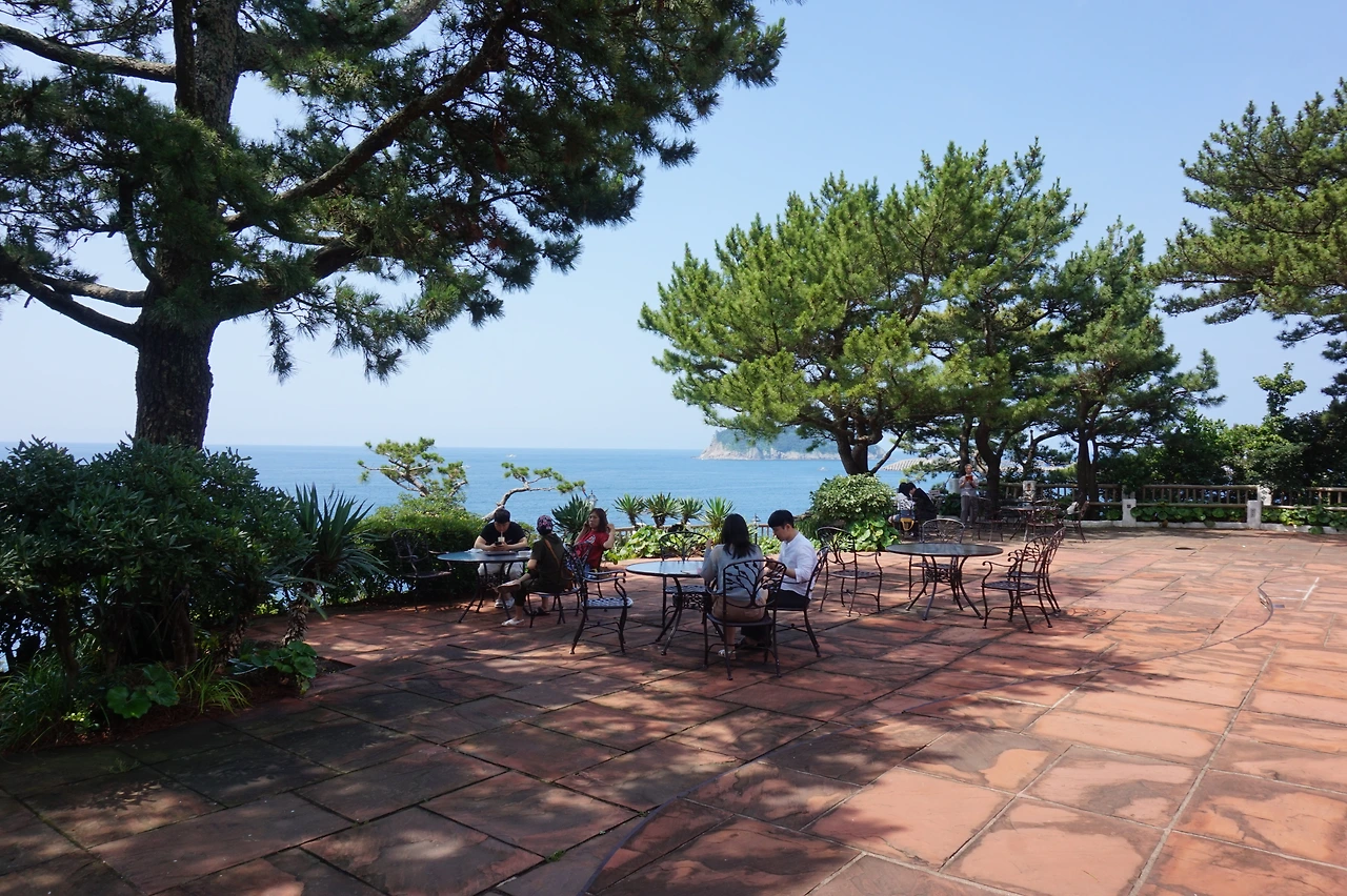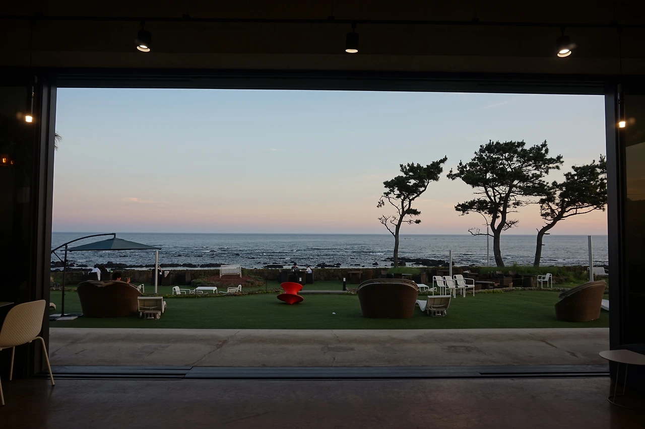 이 카페는 바다가 보이는 전면을 창문도 없이 아예 개방해놓고는 그 앞에 테이블이나 의자도 두지 않았다. 그 덕에 어떤 것에도 방해받지 않는, 하늘과 바다와 소나무 몇 그루만으로 이루어진 끝내주는 전망이 완성되었다. 카페 내부, 넓은 앞마당과 옥상 등 카페를 즐길 수 있는 공간은 충분히 넓다. 해가 쨍쨍하던 한낮부터 어스름해지는 늦저녁까지 풍경은 조금씩 달라졌고 그걸 바라보는 것만으로도 지루할 틈이 없었다. 제주에 와서 다른 곳에 가지 않고 여기에서만 하루 종일 시간을 보내도 아쉬울 게 없겠다는 생각이 들 정도였다.