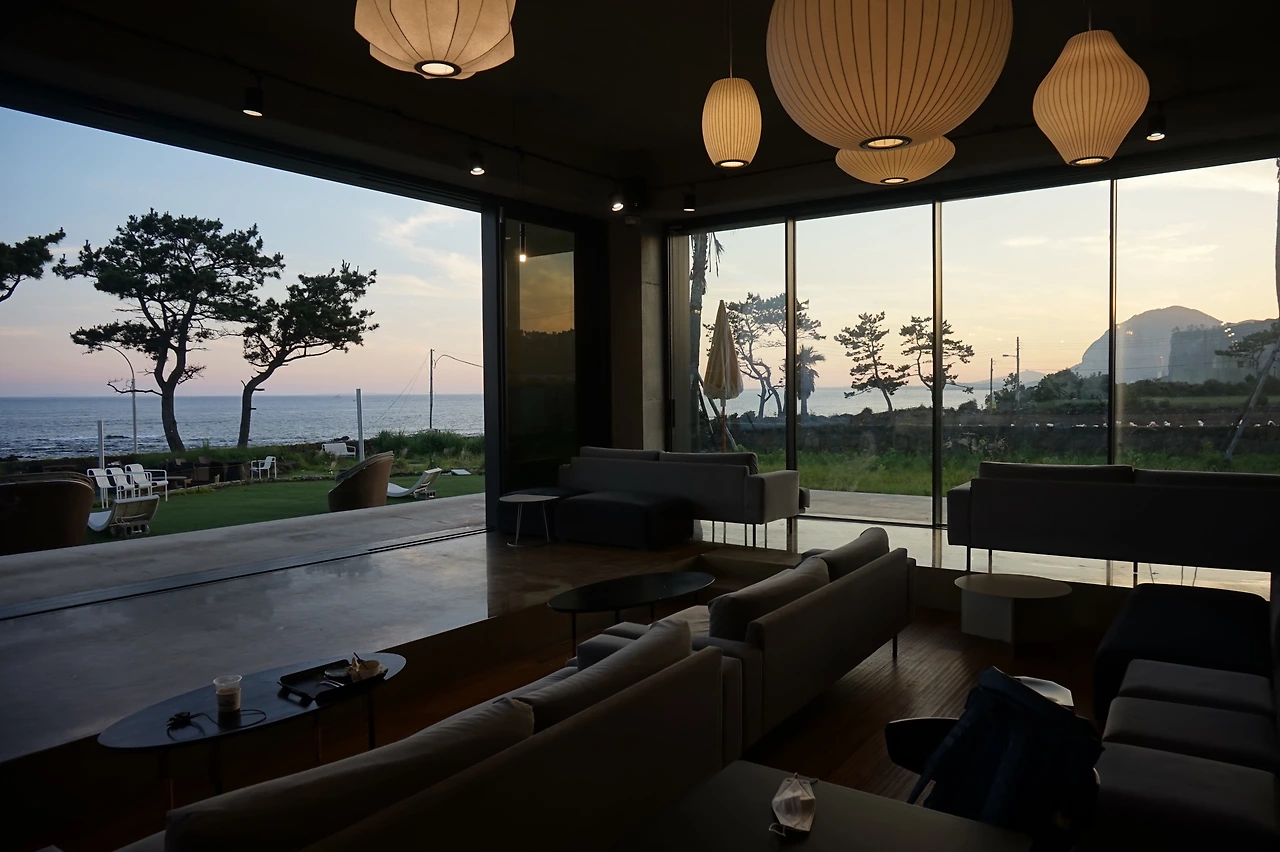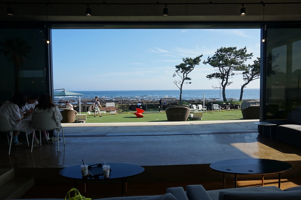 앞서 이야기했듯이, 시간적 여유와 잦은 비로 인해 이번 제주 여행에서는 카페에 자주 방문했다. 카페 순회가 이번 여행의 테마라고 할 수도 있겠다 싶을 정도였다. 예전에 3일, 혹은 5일 정도의 일정으로 제주도에 왔을 때는 생각도 못해본 일이었는데 다니다 보니 이게 또 나름의 맛이 있었다. 그냥 커피를 마시고 시간을 때우는 것이 아니라, 이 공간을 만든 이의 취향과 감각을 경험한다는 의미가 더 컸다. 이런 즐거움을 여러 번 맛보다 보니 이에 비하면 커피 값은 너무 싼 것이 아닌가 하는 생각이 들 정도로 근사한 공간들이 많았다. 특히 나를 사로잡던 곳들은 개방감이 좋고 주변의 자연 풍광이 카페 내부에 잘 녹아든 공간들이었다.