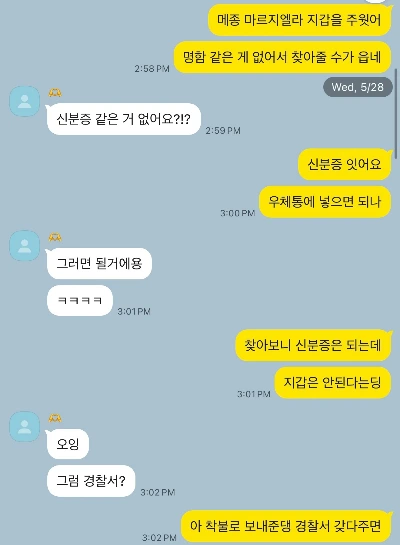 대수롭지 않았다. 지갑을 책상 서랍에 넣으며 내일이나 천천히 지구대 갖다 줘야지, 생각했다. 옆 자리의 후배에게 사연을 말한 건 덤이다. "xx야, 나 지갑 주웠다? 어쩌구 저쩌구.."
