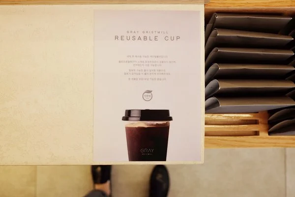 컵은 환경 보호를 위해 리유저블컵.