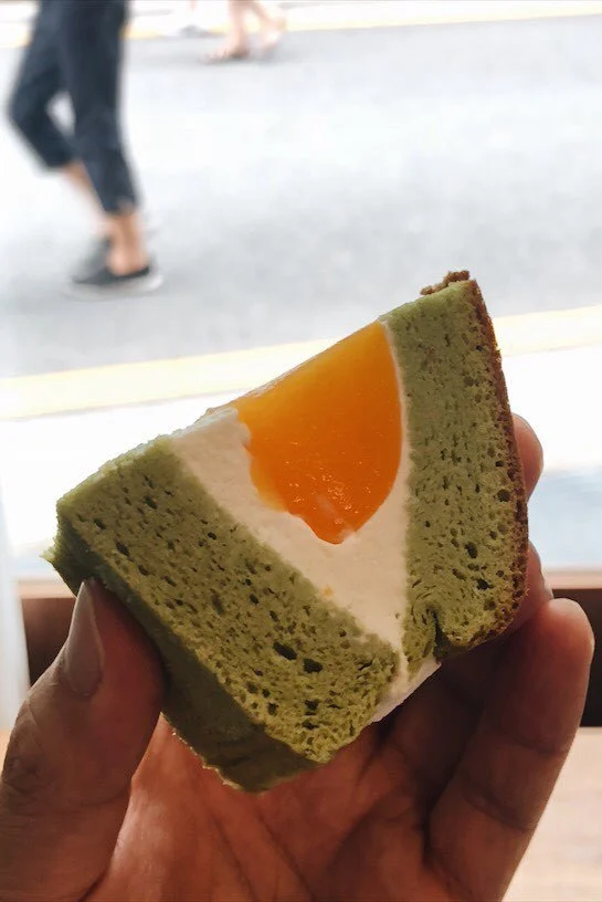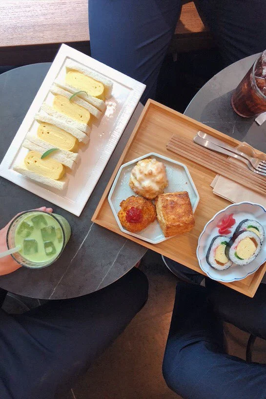 타마고 산도와 시금치 리코타 산도. 아래는 말차 밀크티 입니다.