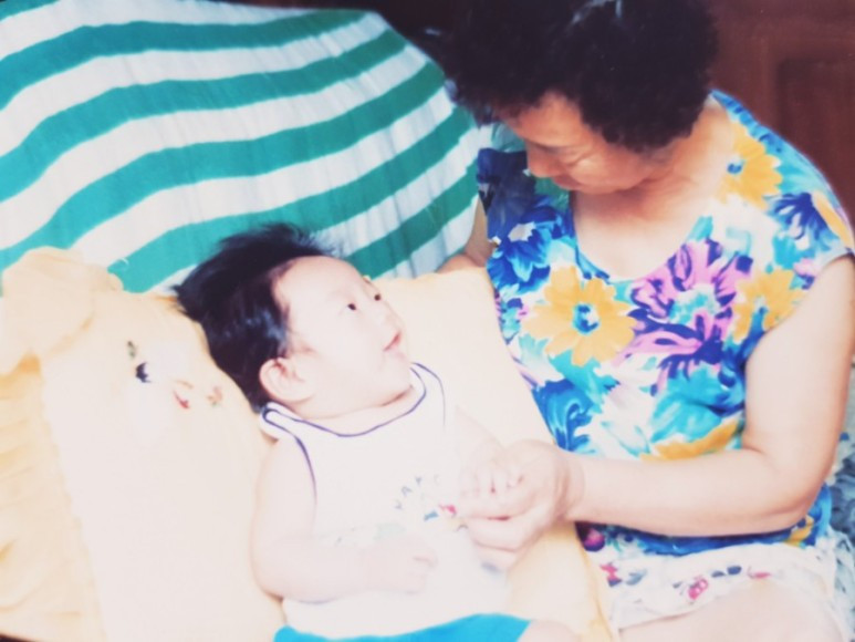 할머니가 장손을 사랑스럽게 보고 계시는 모습