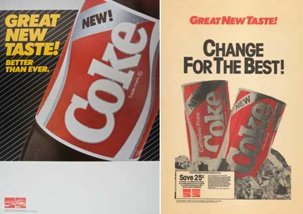 기존 코카콜라의 팬들에게 거센 항의를 받아, 출시 두 달 반 만에 기조의 맛인 코크 클래식을 재 출시한 사례.