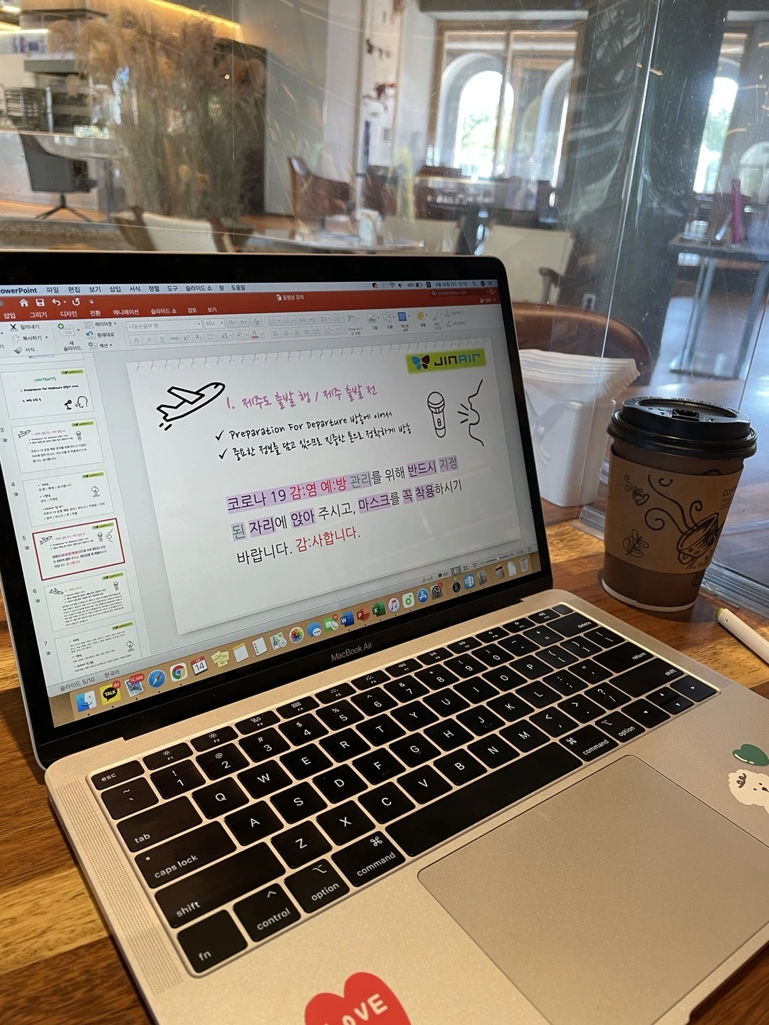 비행 틈틈이 시간을 쪼개서 방송강사 지원과제를 해야 했기에 대구로 비행 갔을 때에도 사무장님이랑 선배님들이 같이 예쁜 카페를 가자고 할 때도 거절했다. 혼자 호텔 아래 카페에 가서 열심히 시범강의 피피티 자료를 만들었다. 내가 그리 좋아하는 예쁜 카페 탐방을 가지 못해도 그 이상으로 재미있었고 행복했다.