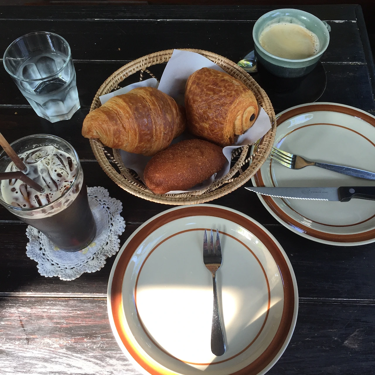 토요일 아침, 늦잠을 잘 수도 있었지만 아침 일찍 숙소를 나와 올드시티에 있는 Baan Bakery로 향했다. 아침 8시에 문을 여는 이곳은 일찍가지 않으면 인기있는 빵들은 살 수 없는 치앙마이 No.1 빵맛집이다. "모 빵집이 얼마나 인기가 많다고 서둘러서 가야해"라고 생각했다간 빈손으로 돌아가기 십상이다. 우리의 어제 모습이다. 아침 10시반에 도착한 빵집에는 앉을 자리도, 빵도 남아있지 않았다. 그렇게 빈손으로 돌아간 어제를 반성하며 오늘은 일찍 서둘러 왔더니 자리도 있고, 빵도 많았다.