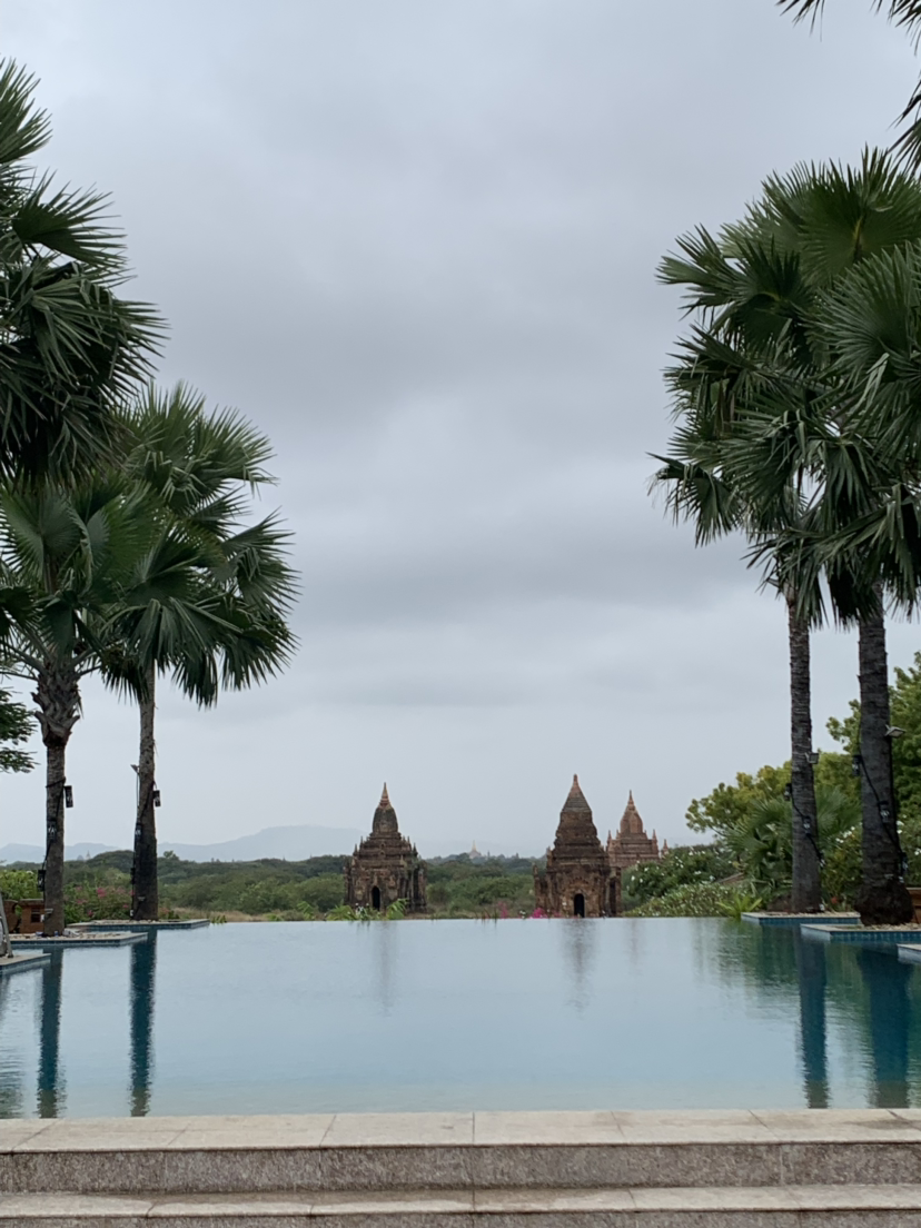 그렇게 오늘 방문한 곳은 Aureum Palace Hotel & Resort. 미얀마 군부독재의 실세가 소유주라는 이 리조트는 객실 및 부대시설에서 파고다가 바로 보인다. 리조트 입구부터 리조트의 클라스가 범상치 않음을 느낄 수 있었는데, 내부로 들어서는 곳에 서있던 전설 속 장군 동상들마저 멋있다. 진시황이 살았다면 이런 곳에 살지 않았을까. 리셉션을 지나 나오는 인피니트풀은 내가 지금껀 본 인피니트풀과는 차원이 다른 것이었다. 오늘은 날씨가 흐려 하늘이 별로 였는데, 만약 날씨까지 좋았다면 이곳의 모습이 어떨지 상상이 안간다.