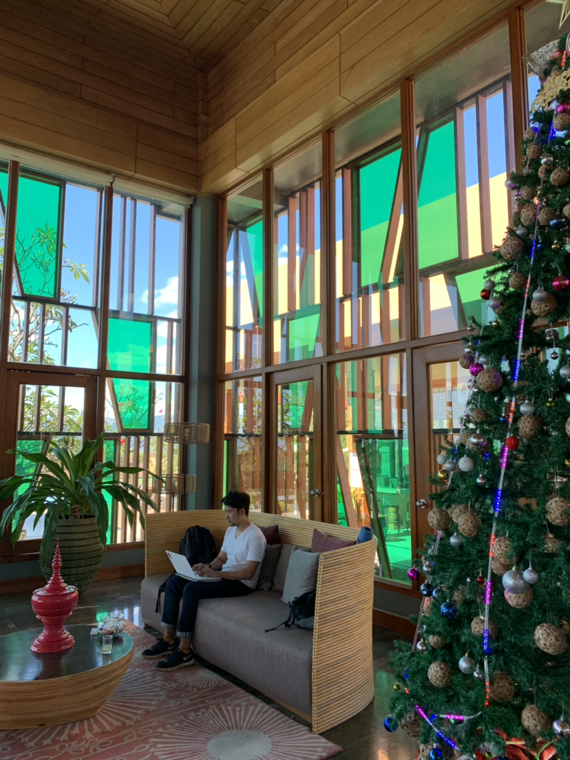 전국민의 90%이상이 불교신자라 크리스마스 분위기가 나지 않을 것 같았지만, 우리가 머무는 숙소마다 트리장식과 산타할아버지 스티커 그리고 여기저기서 들리는 캐롤송으로 크리스마스를 느낄 수 있었다. 승려님이 앉아 있는 비행기 좌석 위로 매달려있는 크리스마스 장식을 보는 이질감이란.