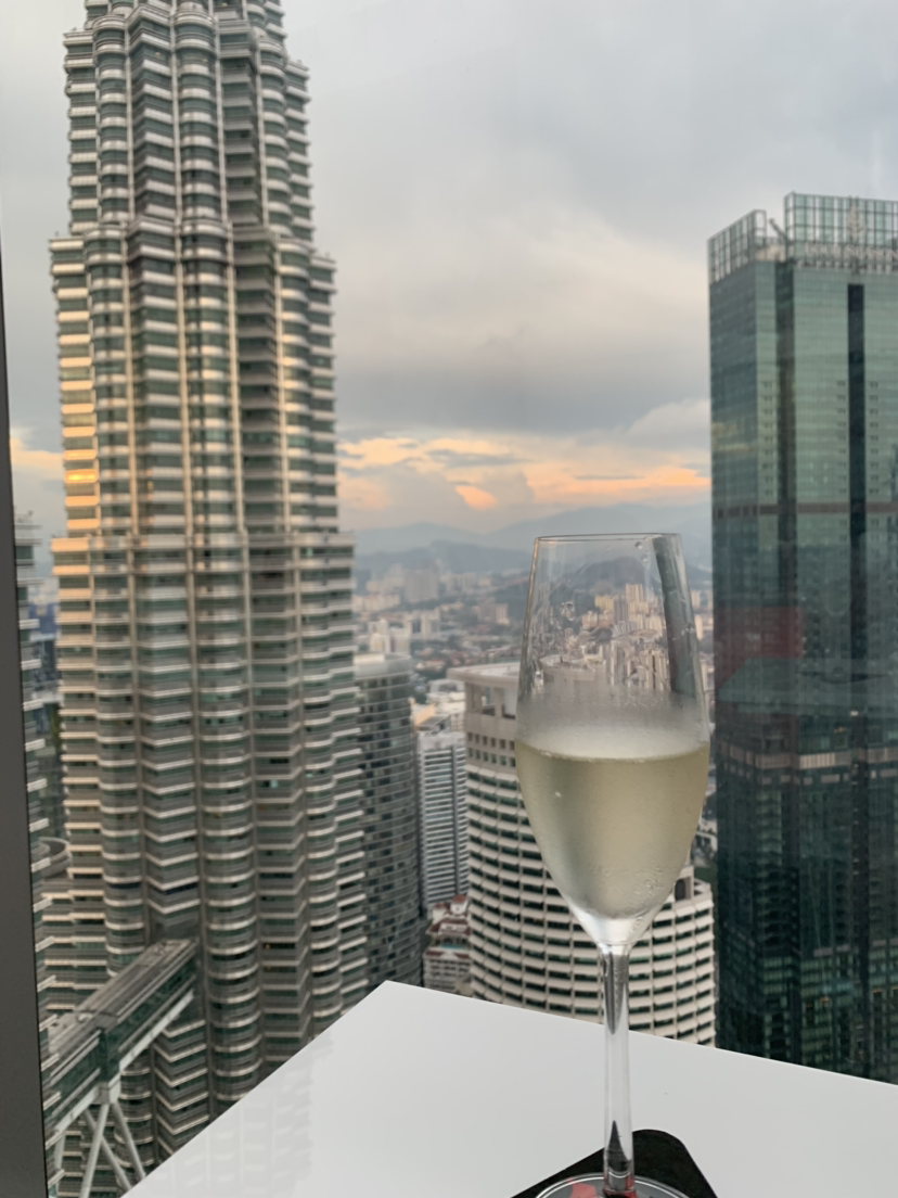 비록 구름이 많아 일몰이 예쁘지는 않았짐나, 페트로나스 트윈 타워의 야경을 바라보며 샴페인 한 잔 마시니 '도시도시' 열매라도 하나 먹은 느낌이다. 핫한 Bar라 그런지 음악도 좋고, 분위기도 좋았다. 딱 하나, 옆에서 강한 영국 영어를 구사하는 영국누나가 줄담배를 피워대는 덕에 나도 거의 담배 한 갑 피운 것 같은 느낌이 든 것 빼고는.