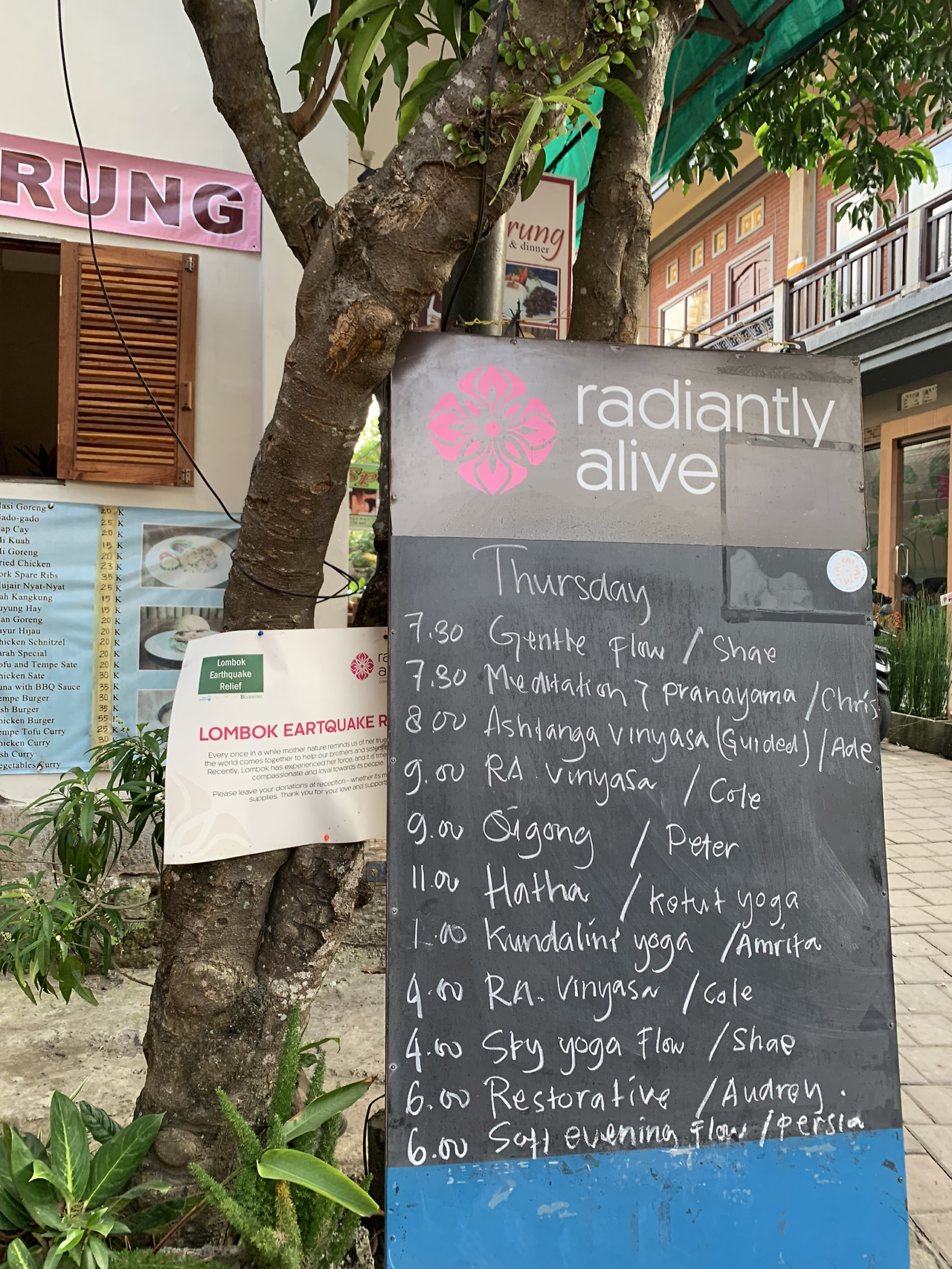 한국어로 된 정보가 얻기 쉽다는 건 그만큼 많은 사람이 다녀갔다는 이야기지만 전체 요가 인구로 보면 한국인은 극히 일부다. 미국인 요가 인구는 천오백만 명이란다. 그만큼 영어로 된 정보는 더욱 많을 것이며 미국뿐 아니라 유럽 국가에서 온 독일인, 네덜란드인, 영국인 등도 많았다. 수요가 많은 만큼 요가 스튜디오는 그만큼 돈을 벌 기회가 많았을 것이다. 특히 영화 <먹고, 기도하고, 사랑하라> 이후 요가의 성지가 된 발리 우붓에는 요가 스튜디오가 기업처럼 잘돼있다. 한국인들에게도 유명한 두 곳, 요가 반(Yoga Barn)과 래디언틀리 얼라이브 요가(Radiantly Alive Yoga)는 가히 요가 공동체 같다. 요가 수업과 숙소 그리고 식당까지 운영하는 체계적인 곳이다. 그리고 그만큼 상업화됐다. (오십 명이 넘는 인원이 함께 호흡했던 요가 반의 수업은 요가원에서 운영하는 식당에서 먹은 나시고랭보다 덜 인상적이었다) 당연히 영어로 수업을 하며 선생님도 현지인보다 미국, 호주, 유럽인 위주였다. 영어를 해도 해도 너무 잘한다.