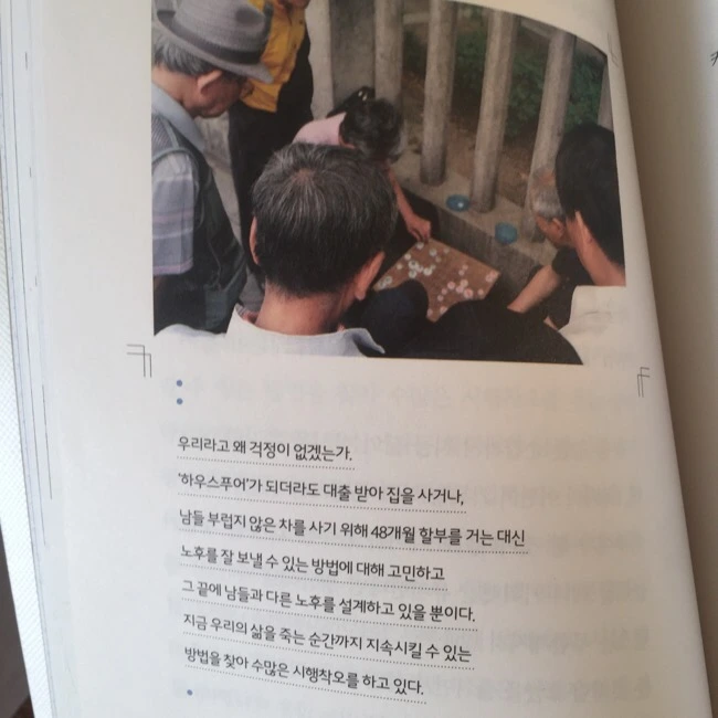 우리라고 왜 걱정이 없겠는가. '하우스푸어'가 되더라도 대출받아 집을 사거나, 남들 부럽지 않은 차를 사기 위해 48개월 할부를 거는 대신 노후를 잘 보낼 수 있는 방법에 대해 고민하고 그 끝에 남들과 다른 노후를 설계하고 있을 뿐이다. 지금 우리의 삶을 죽는 순간까지 지속시킬 수 있는 방법을 찾아 수많은 시행착오를 하고 있다.