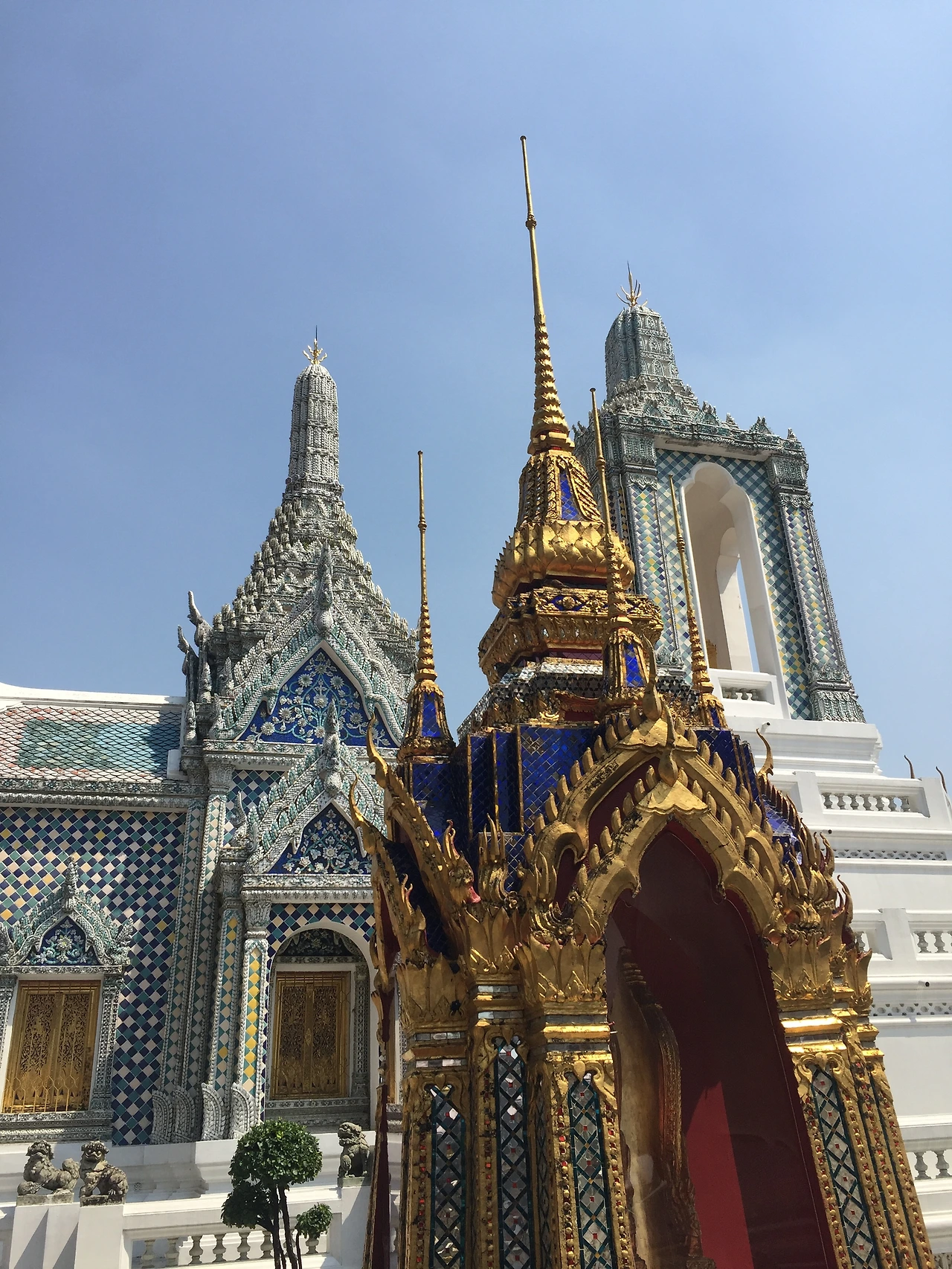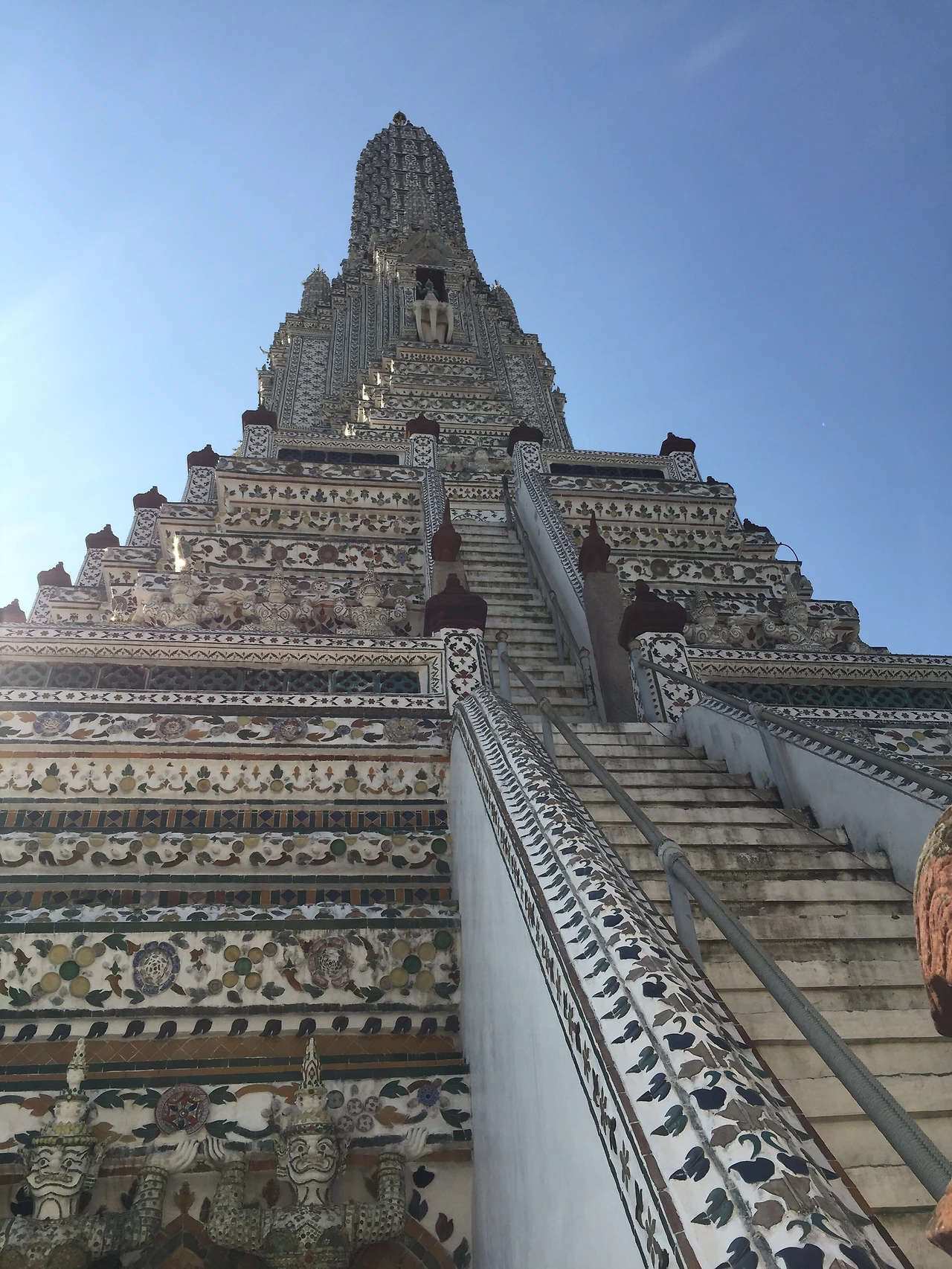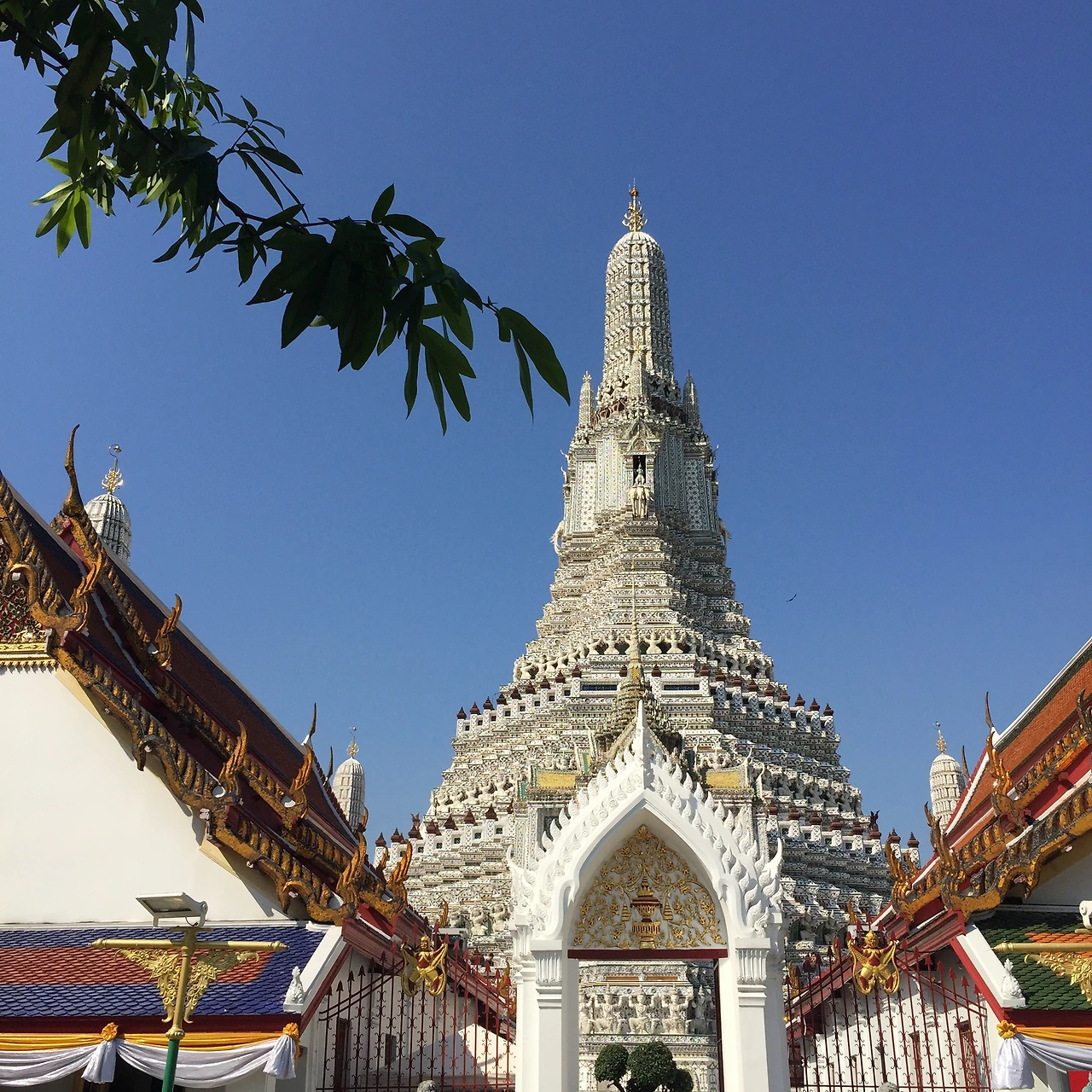 오늘은 왓프라깨우-왓포-왓아룬을 구경했다. 우리 숙소가 강건너라 왓아룬이 가까워 왓아룬을 먼저 방문했다. ‘왓’은 사원, ‘아룬’은 새벽이라 ‘왓아룬’은 새벽사원이란 뜻인데, 이름에 걸맞게 아침 새소리와 함께 보이는 왓아룬은 맑고 청명했다. 대부분의 관광객이 왓 프라깨우-왓포-왓아룬 순서로 관람을 하기 때문에 우리는 사람이 별로 없을 때 관람을 마칠 수 있었다.