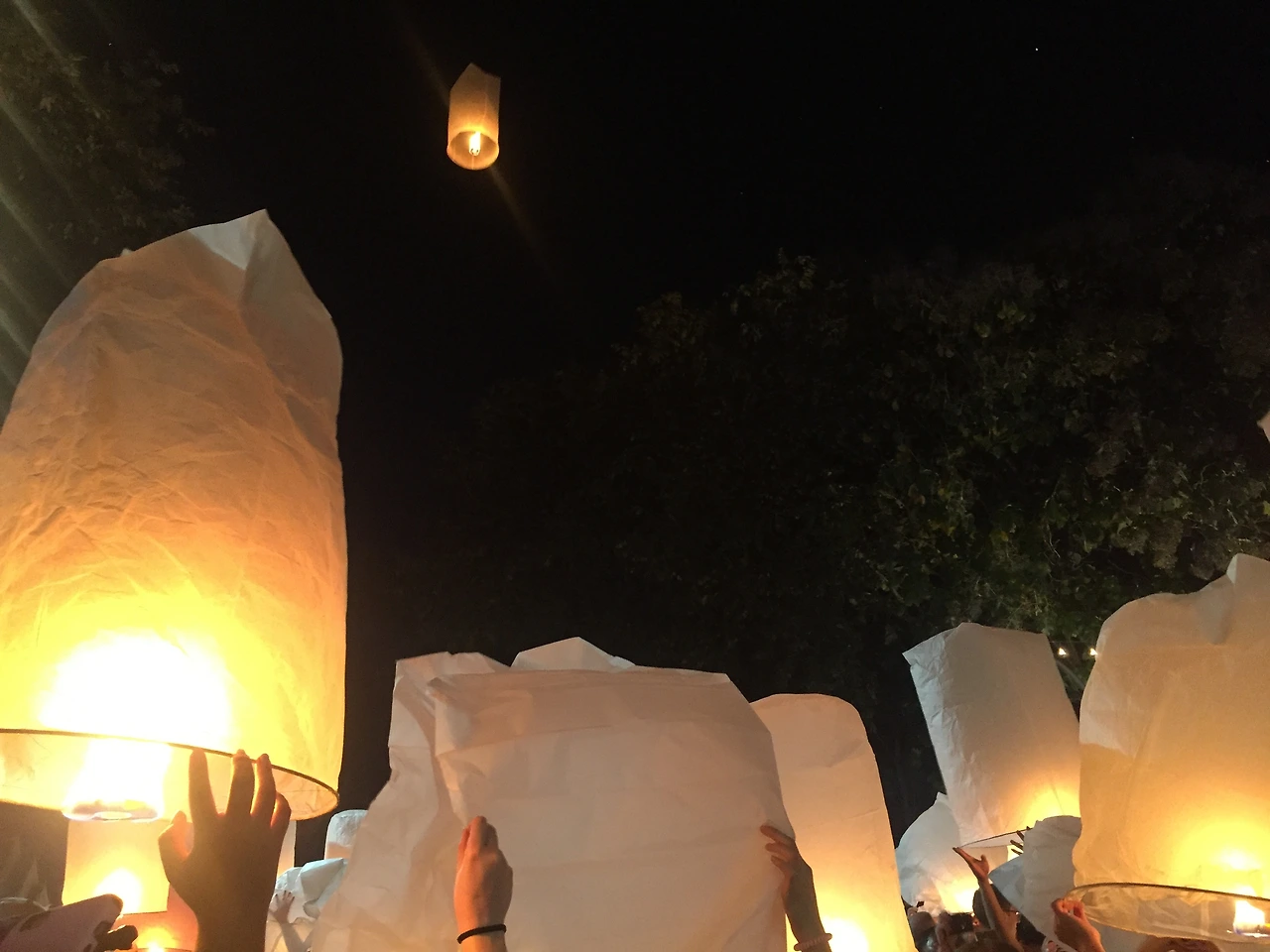 밤하늘 사방을 수놓은 별들같던 풍등에 우리의 야무진 소원도 실어보내어 모두 이루어지길. 행복한 밤이다.