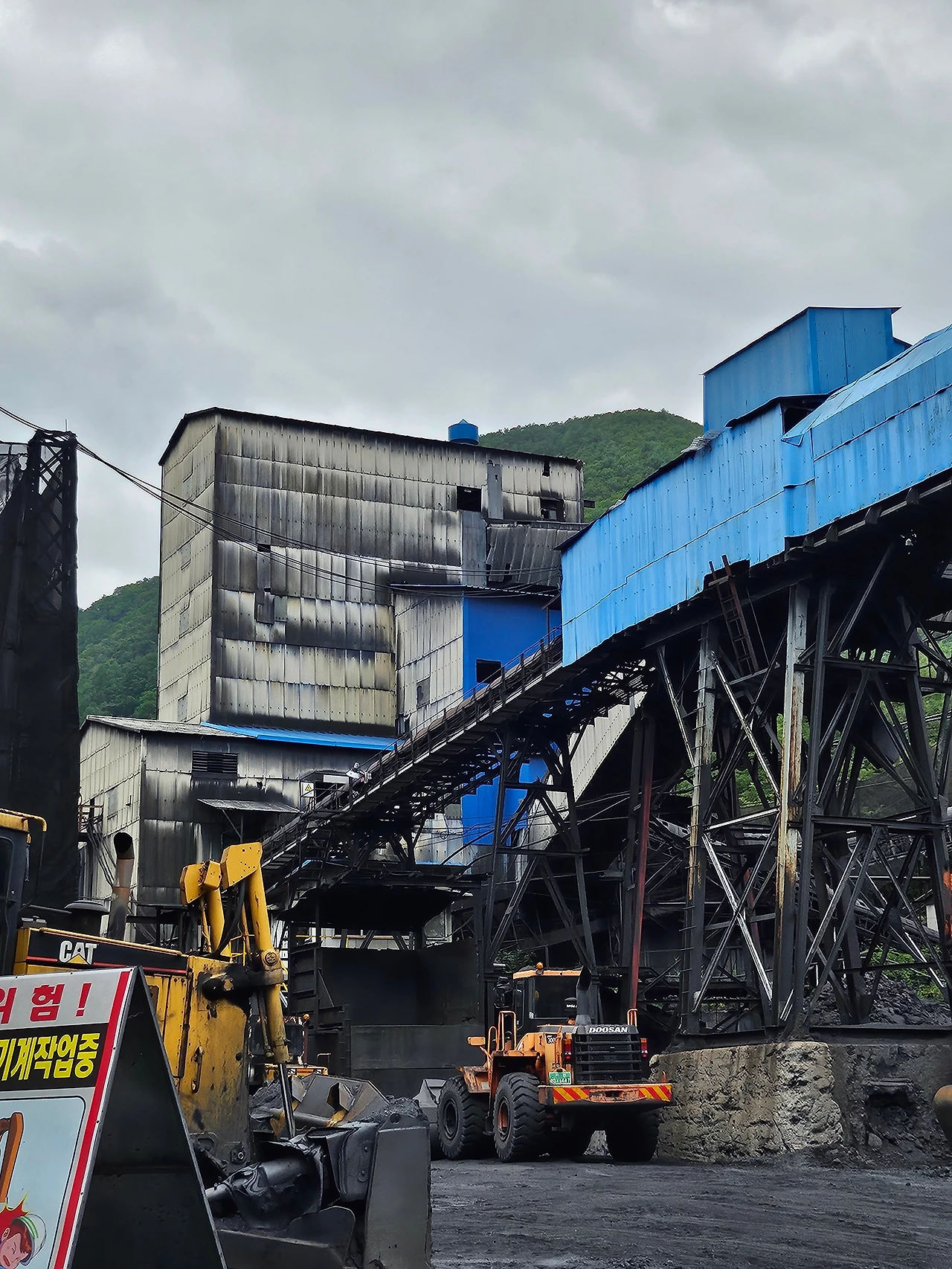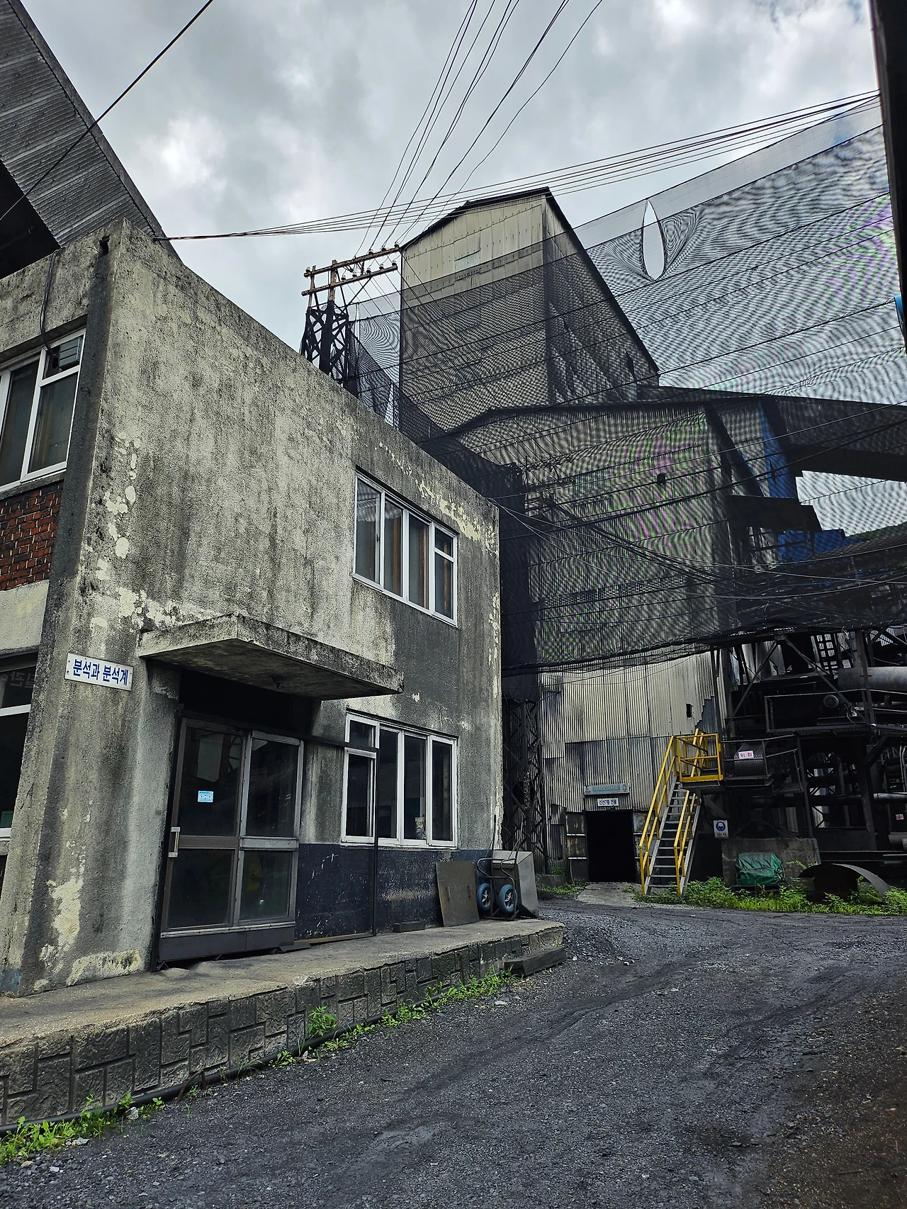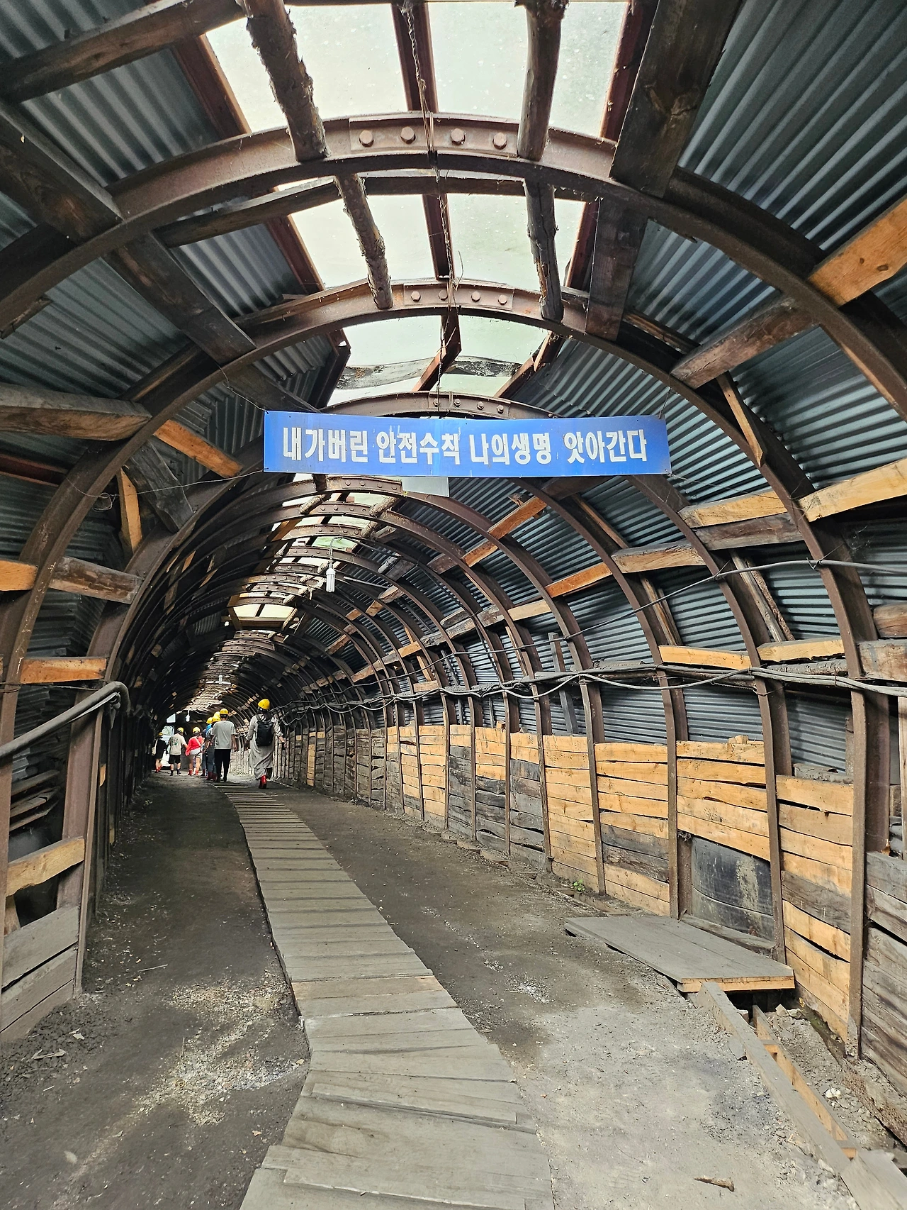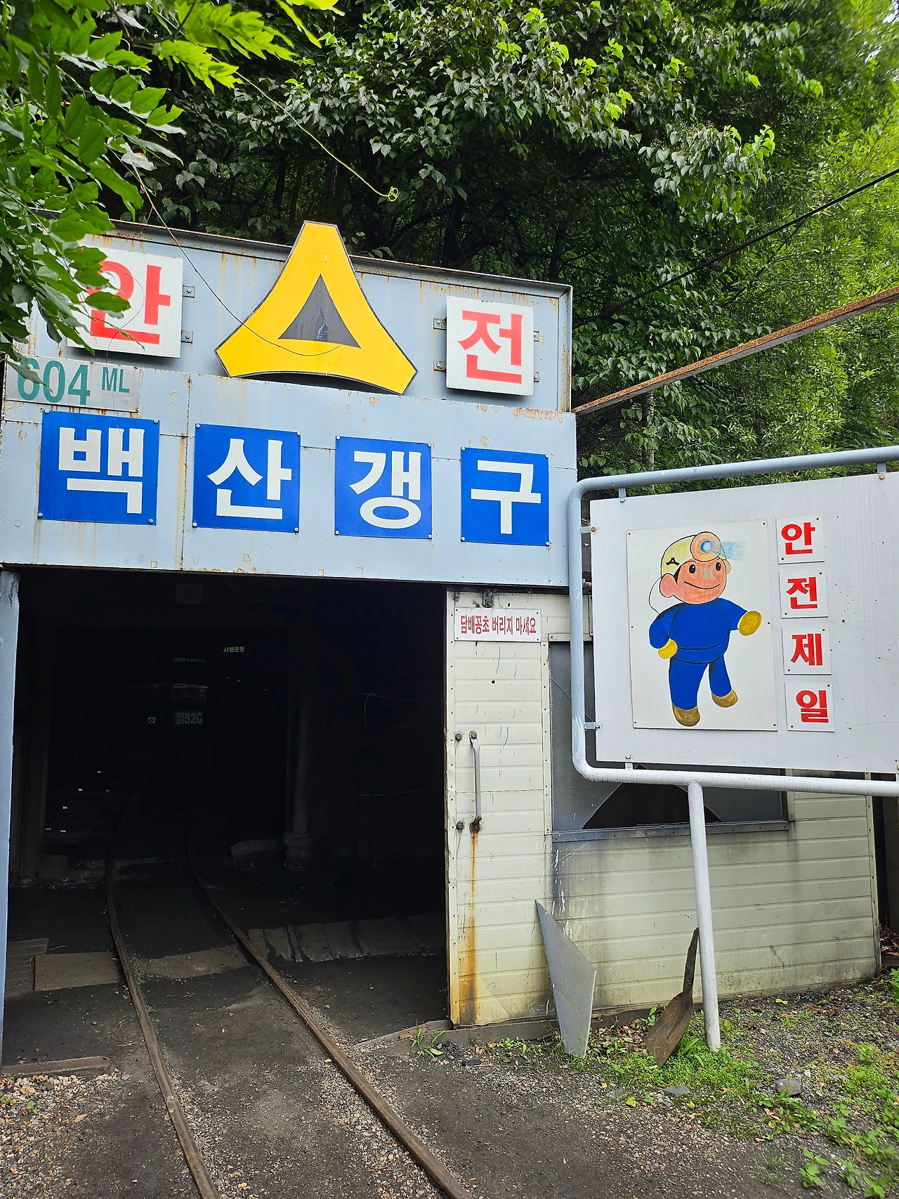 바로 앞이 장성공업소 탄광이라 걸어서 이동을 했는데、 아무래도 지금 운영이 되고 있는 광업소이다 보니 들어갈 때 안전모와 장화를 필수적으로 착용해야 했다。