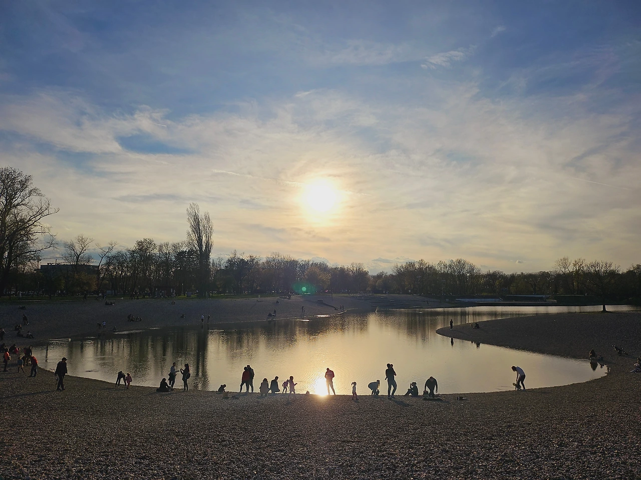조용하게 호수를 바라보며 담소를 나누는 사람들이