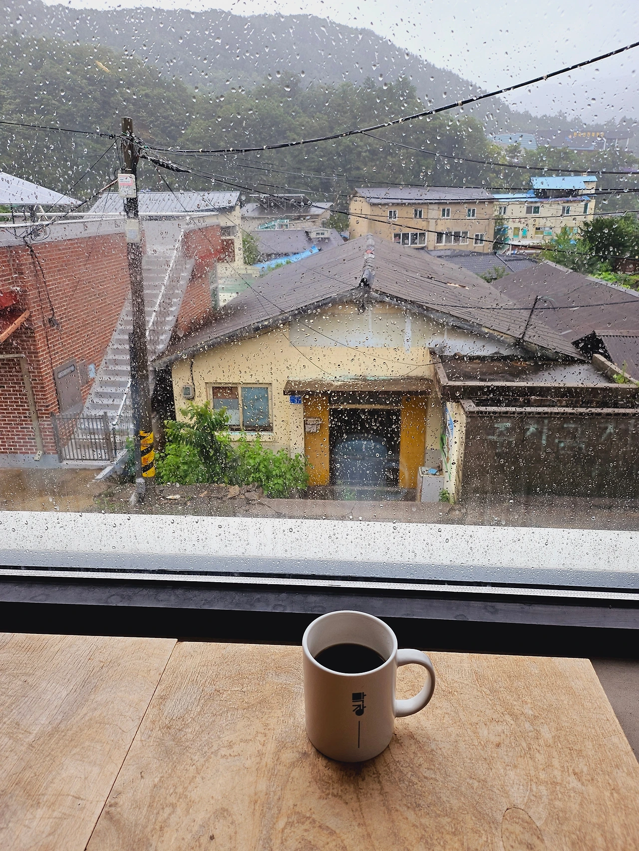 비는 계속해서 오는데, 무브노드 실내에서 창밖을 보는 풍경은 평온하고 운치가 있어 비 오는 날 듣기 좋은 노래를 틀며, 모닝커피를 한잔 마시는 여유까지 부릴 수 있었다.