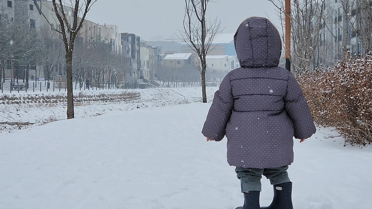 동네는 온통 하얀 눈이불을 덮어썼다. 어제도 걸었던 거리인데, 오늘은 발걸음마다 '뽀드득' 소리가 새롭다. 곳곳에는 아이들이 만든 눈사람과 눈오리가 자리 잡았다. 돌길, 흙길, 잔디밭길의 경계가 모두 사라졌다. 전부 눈길이다. 눈을 주먹밥처럼 뭉쳐 손바닥에 올려놓고 선이에게 보여준다. 내가 토끼 궁둥이를 토닥이듯 눈덩이를 다독이면, 선이도 작은 손으로 '툭툭' 두드린다. 내가 손가락으로 솜사탕을 찌르듯 눈덩이에 구멍을 내면, 선이도 그 몽땅한 손가락을 '콕콕' 눈덩이에 찔러 넣는다. 이번에는 양손 가득 눈을 모아 공중에 흩뿌린다. 설탕처럼 하얗게 흩어지는 눈가루를 선이는 동그란 두 눈에 담는다. 나는 흩날리는 눈가루보다, 눈을 보며 반짝이는 선이의 눈망울이 더 예쁘다.