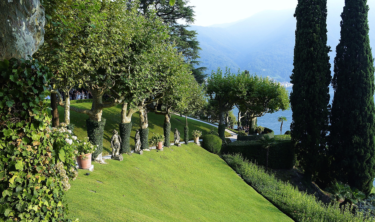이 보석처럼 잘 세공된 정원은 알프스의 산악지역을 바라보며 400여 미터의 깊이로 최고의 담수량을 자랑하는 코모 호수의 맑은 물과, 병풍처럼 둘러싼 봉긋봉긋 솟은 산들의 풍광을 배경으로
