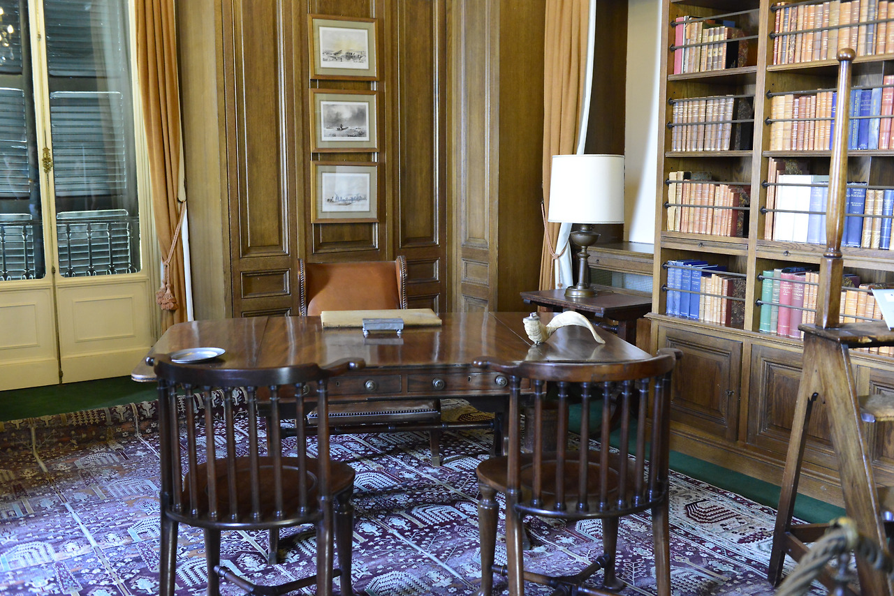 이 공간 중 특히 내 마음에 들었던 곳은 그의 작은 전용 서재였다. 호숫가의 둥근 나무 너머 알프스 산맥을