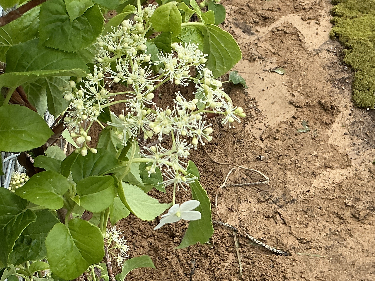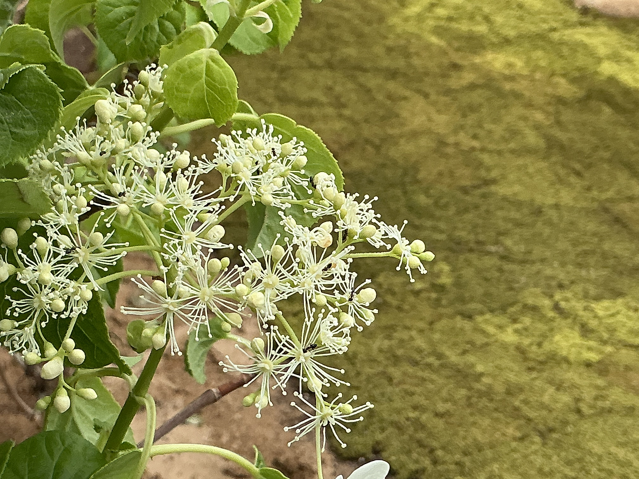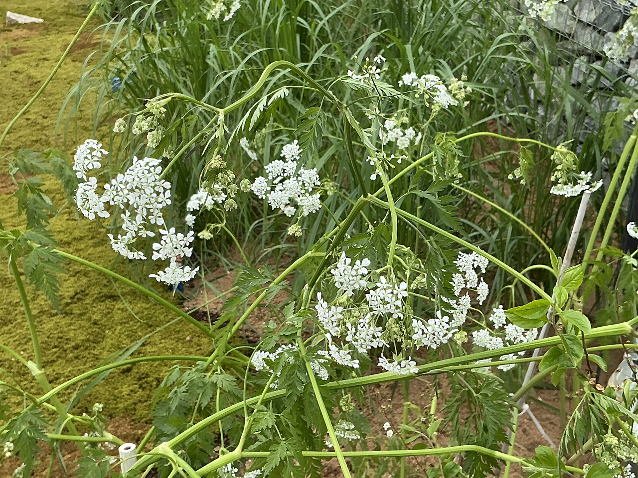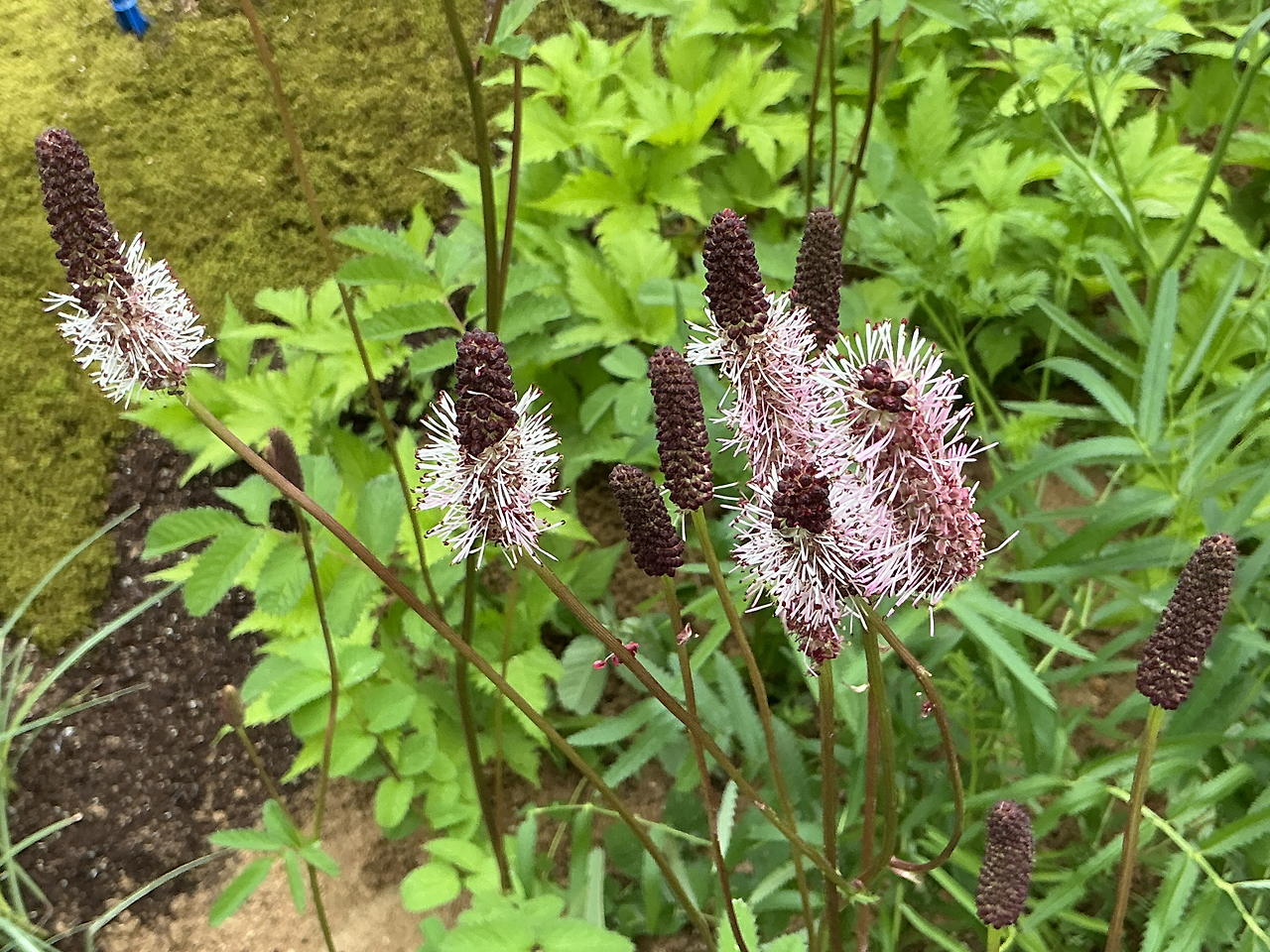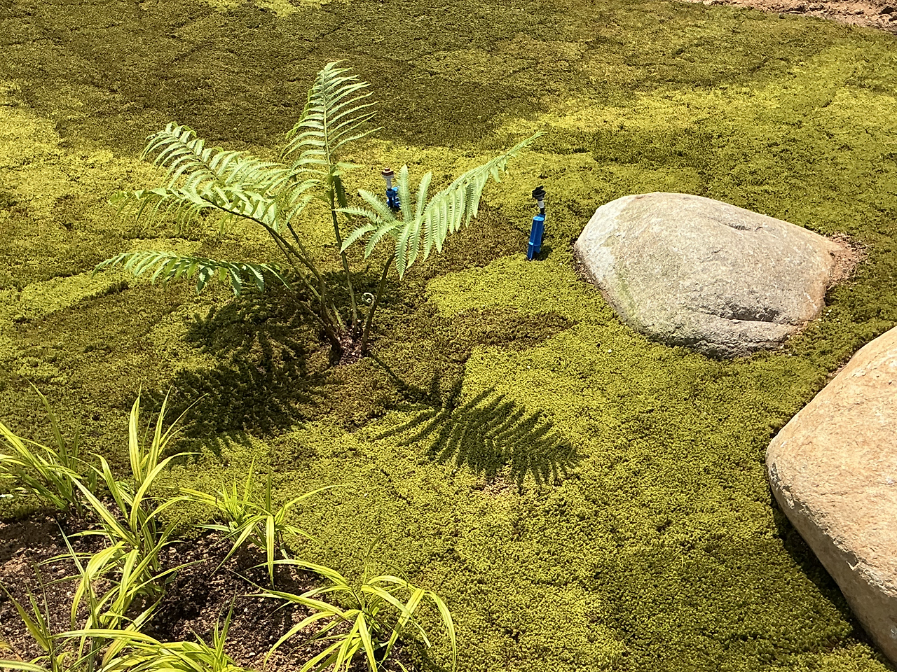 소교목과 풀 꽃 무리에 탄소이끼로 작은 언덕감을 준 탄소 제로 정원을 만들고 있습니다 .