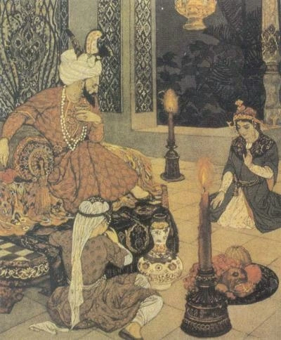 매일 새로운 여왕과 결혼해야 하지만, 여왕의 이야기를 듣고 싶어서 죽이지 못하는 왕의 이야기 <천일야화>