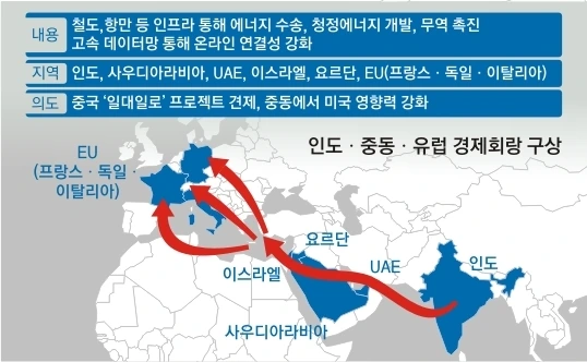 중동지역의 이해관계 당사자가 아닌 한국과 달리 실질적인 주요 당사국인 강대국들의 경우, 그들의 주장을 명시적으로 원용하고 있다. 이스라엘과 사우디 아라비아의 관계개선으로 인도-사우디-이스라엘-유럽-미국을 이은 경제회랑을 실현시키고 싶은 미국(나아가 역외균형으로서 본토 밖의 지역에 군사적 개입을 점진적으로 줄이기를 바라기에)은 군사적 개입을 지양한 채 군비 차원에서의 지원만 유지하고 있다.