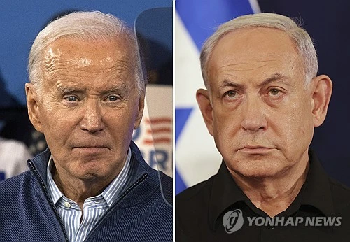 좌: 바이든 미국 대통령, 우: 네타냐후 이스라엘 총리