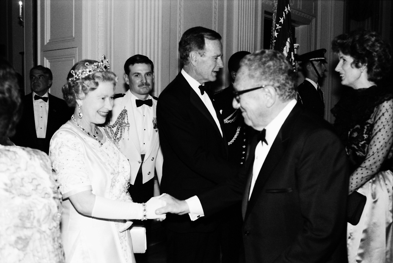 좌: 엘리자베스 2세, 중: 아버지 부시, 우: 헨리 키신저