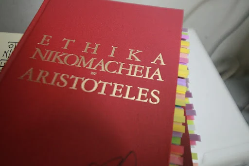 물론 아리스토텔레스가 왕의 전속교사로 배속되고자 <니코마코스 윤리학>을 집필했는지 아닌지에 대한 논의는 분분하다. 하지만 그의 글은 내다볼 줄 아는 실천적 지혜를 함양하는 방법과, 정치와 법에 대해 논하고 있기 때문이고, <니코마스 윤리학>의 말미에 <정치학>에서 추가적인 함의를 다루겠다 언급하는 점은 관조적인 삶과 정치참여의 삶의 조화를 이루겠다는 시도로 보이기 때문이다.