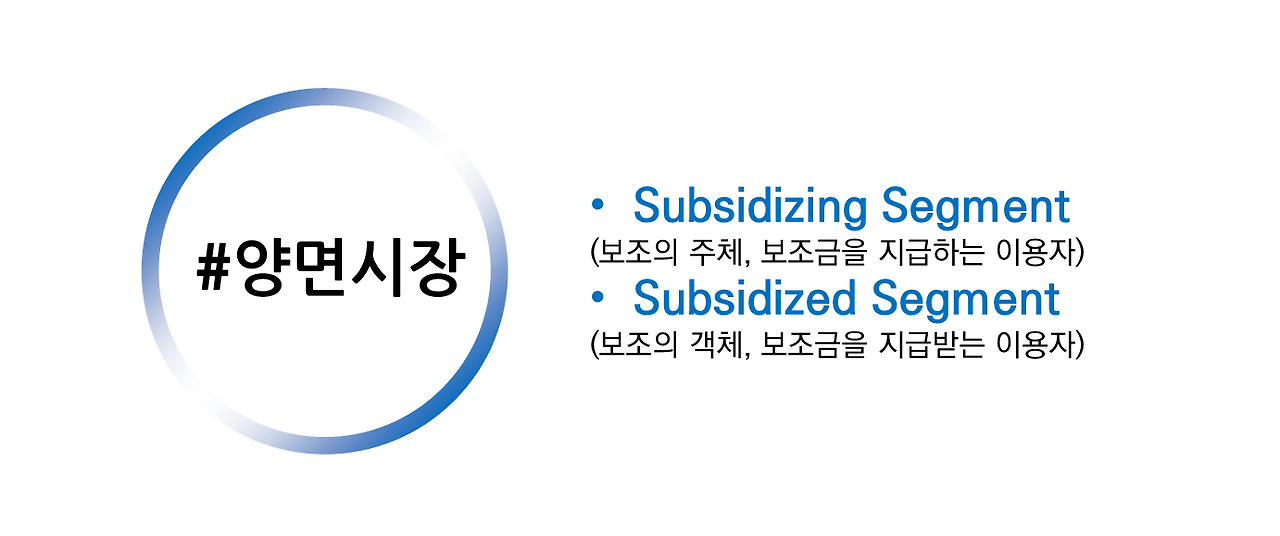 플랫폼 관점에서 두 유저를 부르는 워딩이 있는데 하나는 Subsidizing Segment, 다른 하나는 Subsidized Segment입니다. 쉽게 이야기해서 한 유저 집군은 돈을 내는 유저(Subsidizing Segment), 다른 한 유저 집군은 혜택을 받는 유저(subsidized Segment)이라는 의미입니다. 이제는 왜 플랫폼이 상호연결을 필요로 하는 둘 이상의 구분되는 이 고객그룹간의 거래(Transaction)를 중재하는 '양면시장'이 선결 조건인지 이해하셨을 겁니다. (이미 상식적으로 알고 계신 부분이겠지만)