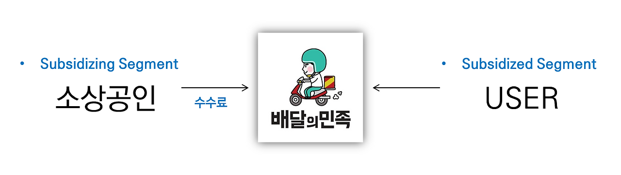 국내 로컬 대표 플랫폼인 배달의 민족도 당연히 이러한 양면시장을 기반으로 합니다. Subsidized Segement (혜택을 받는 유저인 소비자)와 Subsidizing Segment (수수료를 내는 유저인 소상공인) 를 연결하는 플랫폼이기 때문이죠.