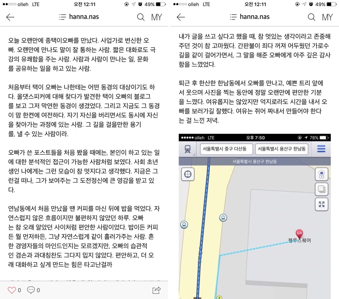 마지막으로... 어제 위팅 이벤트를 할 때 잠깐 들러준 한나가 헤어지고 나에게 문자로 준 본인의 블로그 글을 쓰며 마무리하려고 한다. 그녀의 글 또한 나에게 커다란 위로가 되어주었기에...