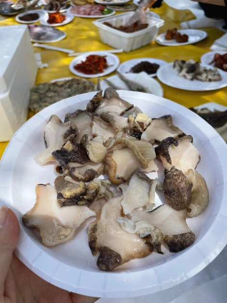 돗자리 위에 앉은 식구들 일동은 고모, 고모부에게 박수갈채를 보냈다. 새벽부터 산지 직송해오신 소라회에 초장을 듬뿍 발라 먹었다. 과육을 삼키는 것처럼 달고 신선했다. 맛있게 먹는 식구들을 보며 고모부는 인기쟁이가 된 것 같다며 좋아하셨다.