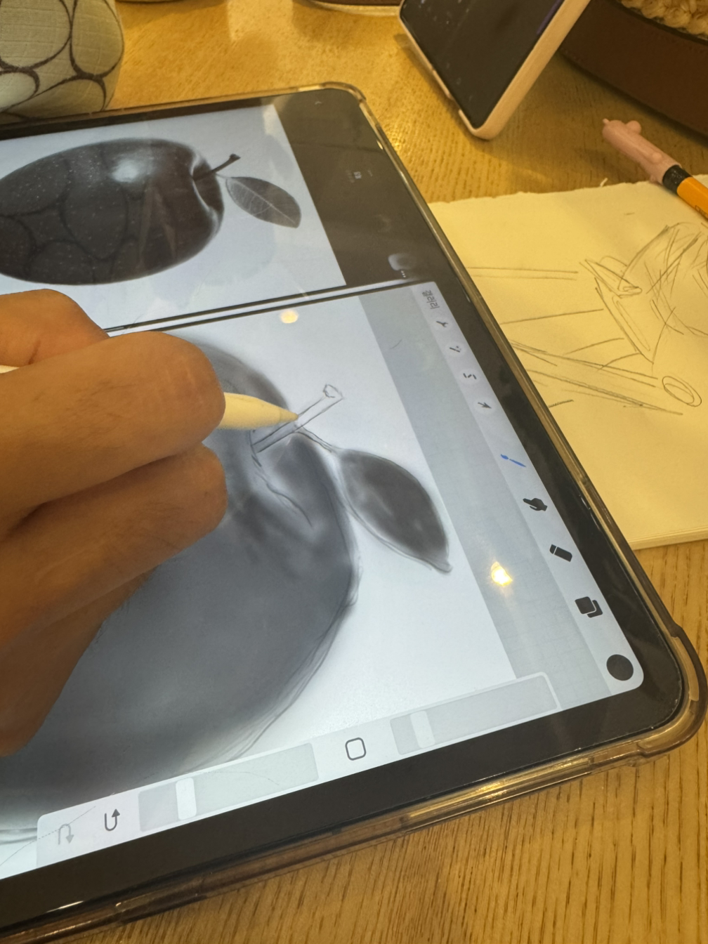 요즘 동네 카페에서 iPad 드로잉 클래스를 진행하고 있는데요. 수강생분들께서 열심히 그리고 계시는 사진입니다.