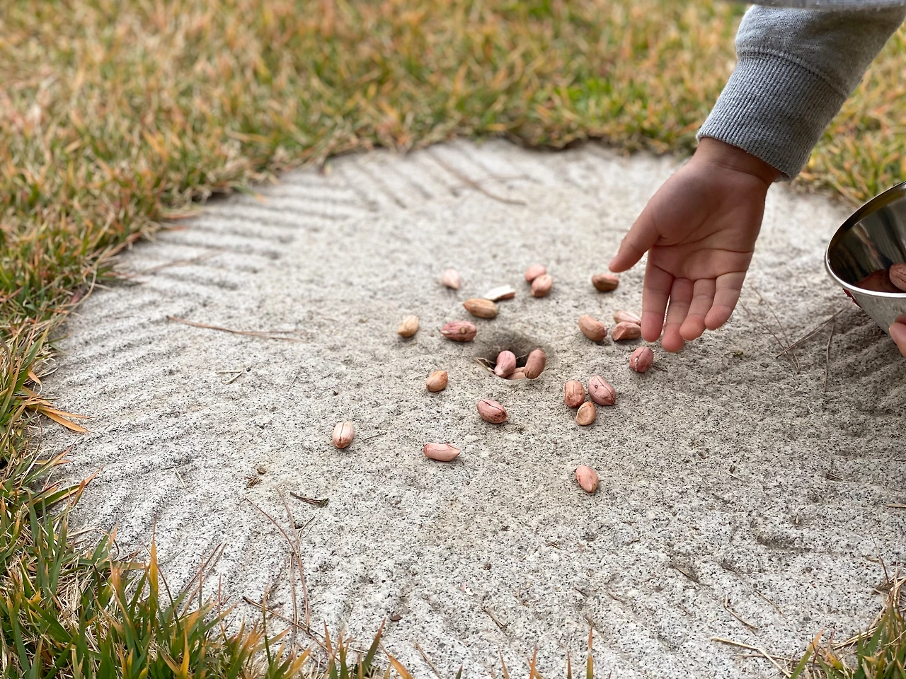 먼저 제안하지 않아도 넛지 정도로도 아이는 이렇게 심성 고운 생각을 낸다. 땅콩을 담은 그릇을 들고 함께 마당으로 나갔다. 아이는 까치들에게 잘 보이도록 땅콩을 잔디가 아닌 디딤돌에 널어주자고 한다. 그러고 나서 우리는 한참을 집안에서 새가 오길 기다렸다. 통 창문에 얼굴을 문대며 밖을 쳐다보는 아이의 뒷모습이 너무 귀엽다. 그러나 우리가 보고 있다는 걸 아는 듯 나타나지 않는 까치. 포기하고 잠시 놀이를 하고 나서 내다보니 어라, 땅콩이 그새 사라졌다. 아이는 장면을 목격하지 못해 금세라도 떨어질 듯 눈물이 그렁그렁 맺혀있다.