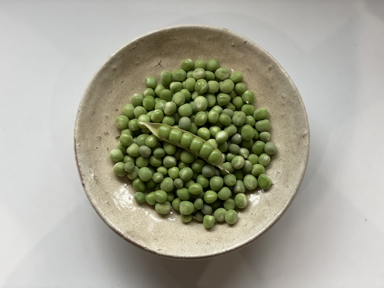 둥근 접시에 소복이 쌓인 완두로 밥을 지었다.