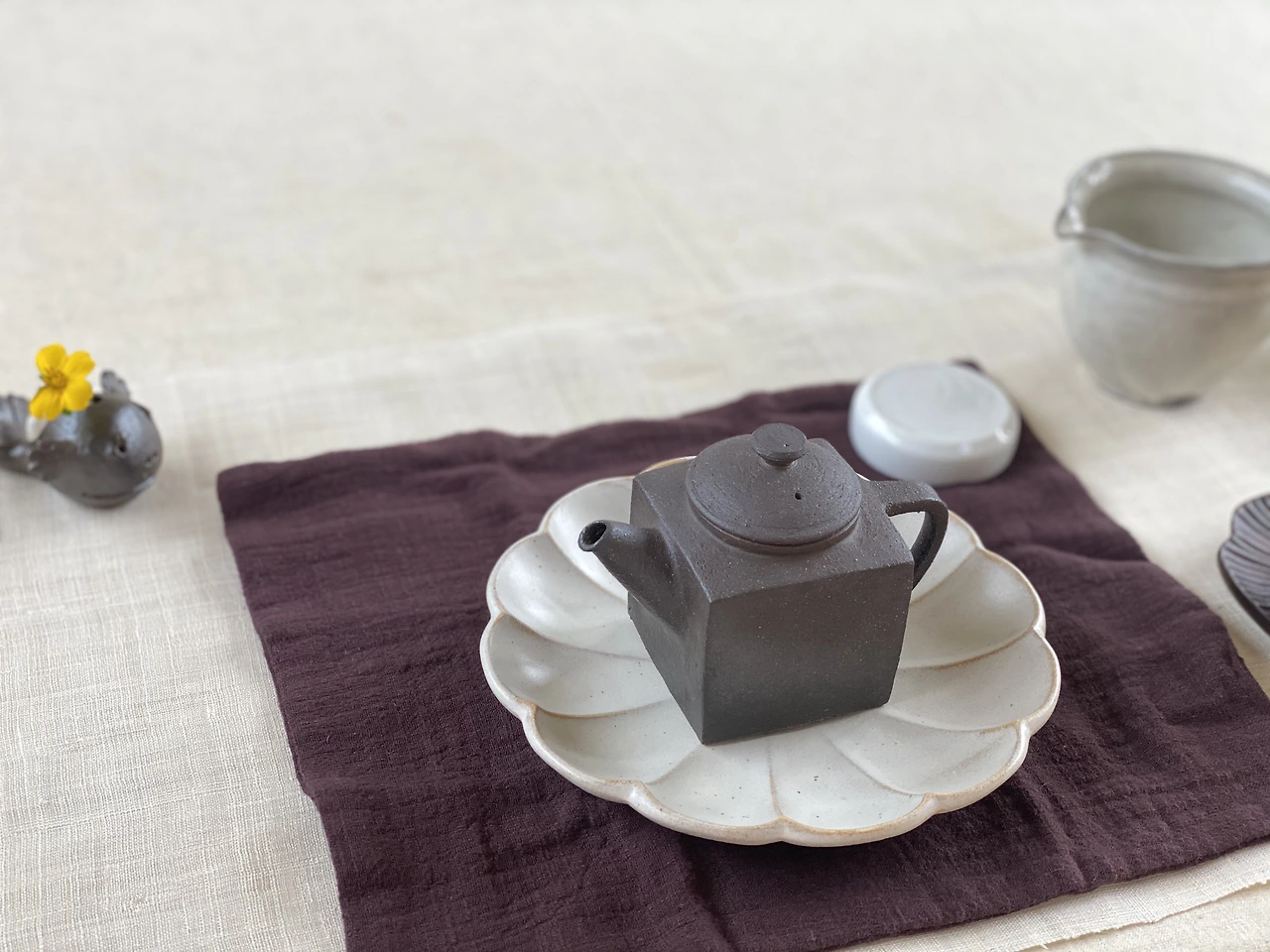 오늘 꺼낸 다관은 작가의 작업실에서 직접 골라왔다. 지하실의 작은 방에서는 흙과 물과 차의 냄새에, 그것들을 부리는 주인의 향기까지 얽혀 들어 취기가 오르는 느낌이었다. 작업실의 이곳저곳을 살피다가 빛이 들지 않는 지하에서도 가장 어두운 곳에 먼지를 뒤집어쓰고 몸을 묻고 있던 이 다관을 집어 들었다. 빚고 깎은 맛이 잘 드러나는 다관의 생김새가 좋았다. 이유 없이 마음의 눈에 띄는 기물이 있다. 작가는 수줍은 듯, 손으로 슥슥 제 자식을 쓸어내렸다. 기물은 그들의 조물주를 꼭 닮았다.