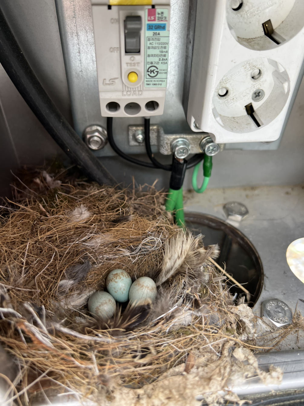 어른 주먹 정도 들어갈 크기인데요. 고양이도 다른 새도 설마 이곳으로 뛰어들 수 없을거에요. 이 작은 알들은 아마도 무사히 부화할 수 있을 것입니다.