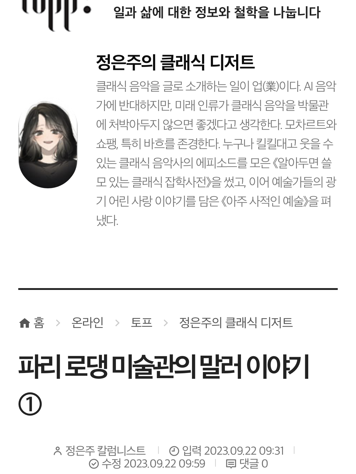 톱클래스 토프 '정은주의 클래식 디저트'에서 파리 로댕 미술관의 말러 이야기 읽어보실 수 있습니다!