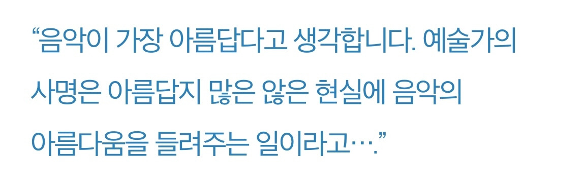 음악을 통해 우리가 느낄 수 있는 모든 감정은 간단하게 설명할 수 없습니다. 음악이 우리에게 전하는 따사로움, 위안, 위로, 행복의 순간은 클래식 음악이 아닌 다른 음악 혹은 다른 예술에서도 느낄 수 있으니까요. 분명하게 말씀드리고 싶은 사실 하나는 음악을 통해 우리는 저마다의 슬픔을 견딜 수 있단 점입니다. 좋은 날은 더 좋지만, 슬픈 날에는 다시 일어설 용기를 건네주는 것이 제가 생각하고 믿는 음악을 찾는 이유입니다.