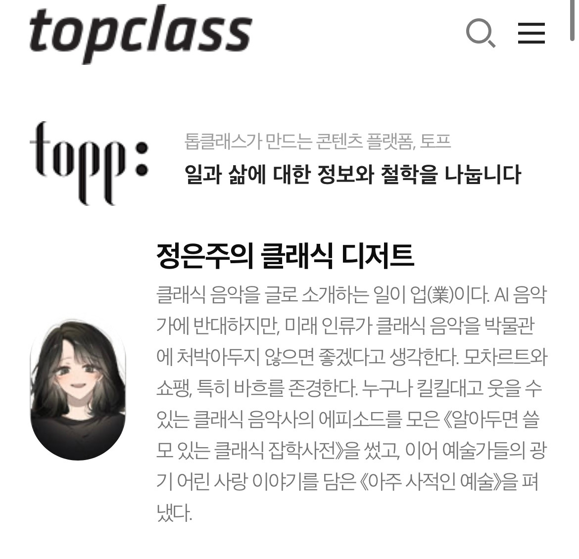 애정하는 <톱클래스> 토프 “정은주의 클래식 디저트”에 임윤찬에 대한 이야기를 썼습니다.